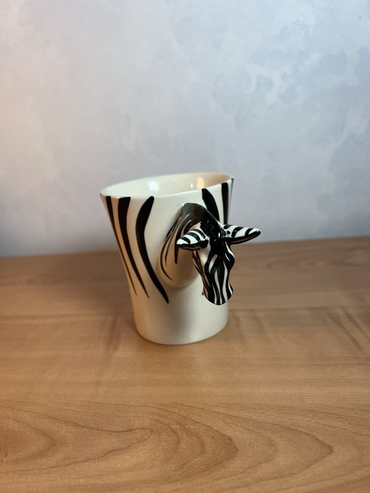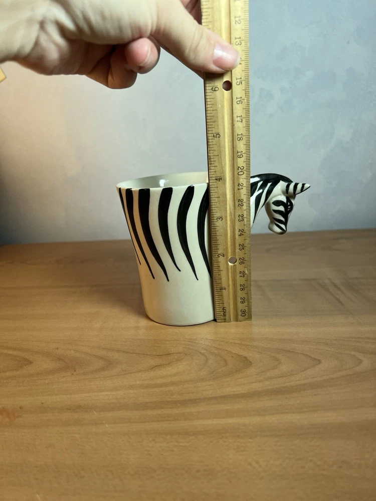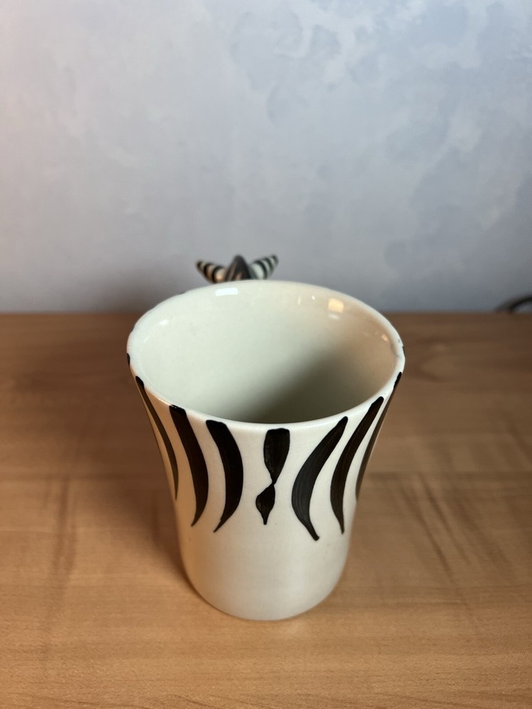 This unique and stylish Pier 1 Imports mug features a beautiful African Zebra design, hand-painted on high-quality ceramic and porcelain material. With a 16 oz. capacity, it is perfect for hot or cold beverages, and is microwave and dishwasher safe for easy use and cleaning. The round shape and large size make it a great addition to any collection, suitable for all occasions and service for one. Smoke free and clean home I make great efforts to pack all of my items very carefully and to get them out same day or next business day.