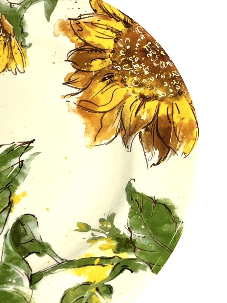 Absolutely love this charming sunflower plate! The vibrant yellow design adds a cheerful, rustic touch to any table setting. It's perfect for serving desserts, salads, or snacks—so versatile and beautifully made. The tiny chip on the underside doesn’t affect its look at all. A must-have for farmhouse-style lovers!
