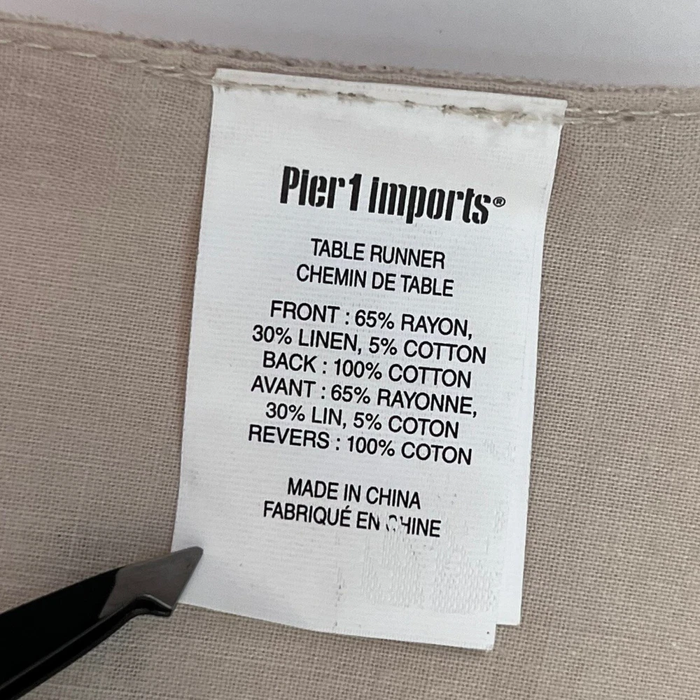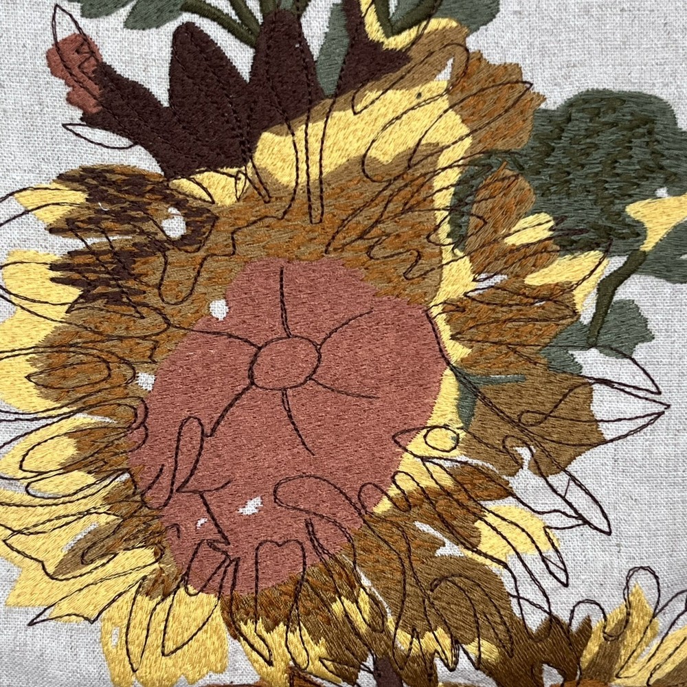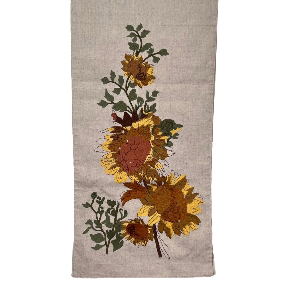 Add some charm to your dining table or party with this beautiful Pier 1 Imports table runner. The floral sunflower embroidery on linen gives a farmhouse style to your decor. Measuring 72" x 13", this table runner is perfect for various occasions like Mother's Day, baby shower, new home, birthday, labor day, and multipurpose use. The beige color of the table runner with fall theme matches any decor. Made of rayon, linen, and cotton, it is durable and adds texture to your table setting. This table runner is a must-have for any party or family dinner. Preowned condition very good with a faint spot as highlighted in the photo. Smoke free.