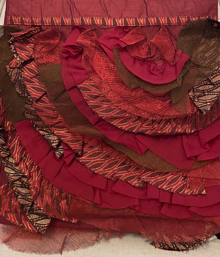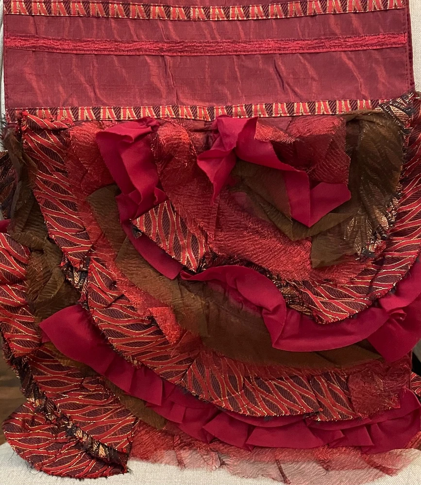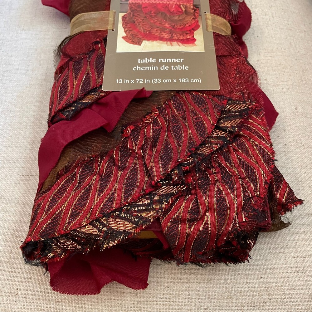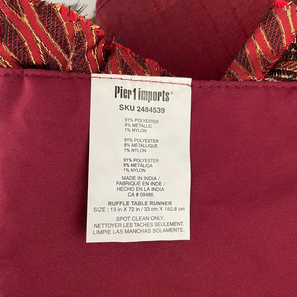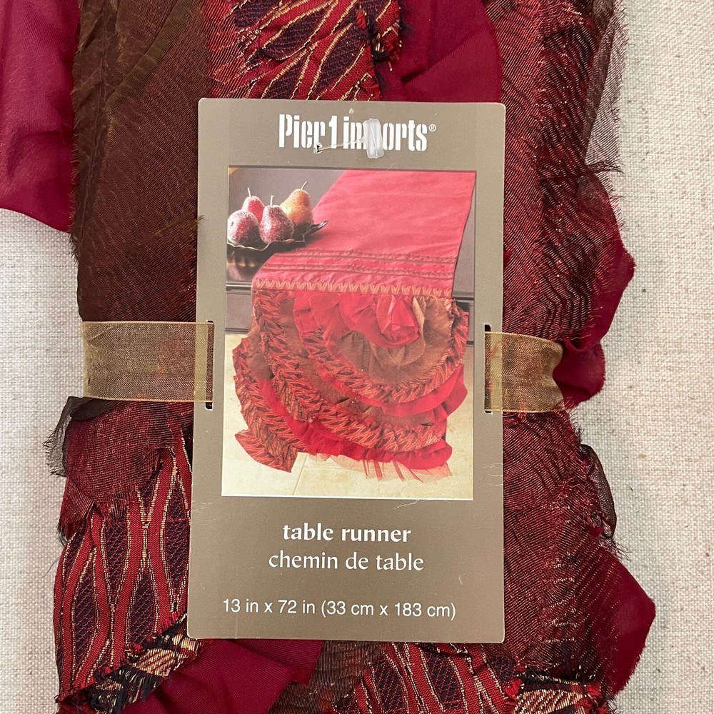 Pier 1 Imports Table Runner Burgundy with Ruffles 13 x 72 Condition is new Partially unwrapped to photograph See all photos Note: Color may differ slightly in photos due to flash, lighting, and screen resolution 2021-279