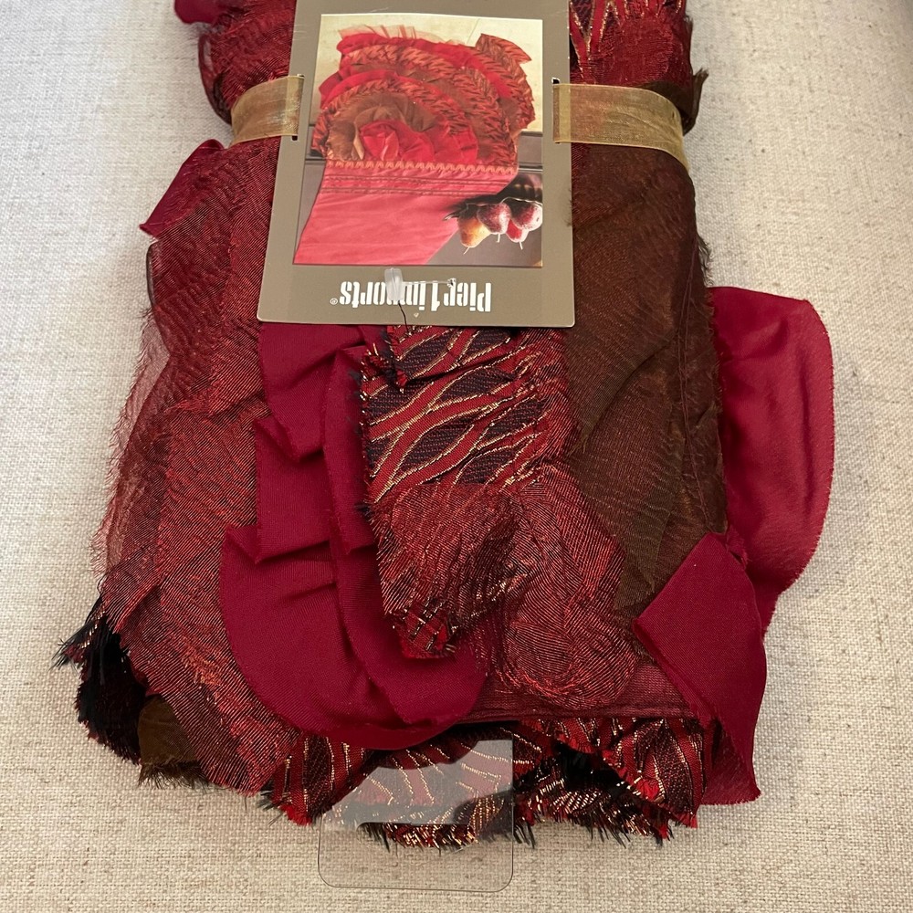 Pier 1 Imports Table Runner Burgundy with Ruffles 13 x 72 Condition is new Partially unwrapped to photograph See all photos Note: Color may differ slightly in photos due to flash, lighting, and screen...
