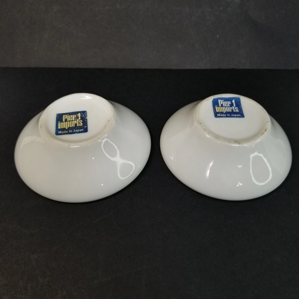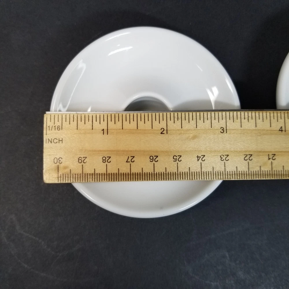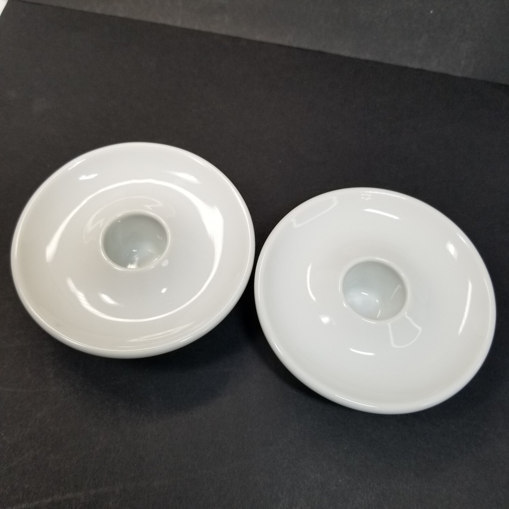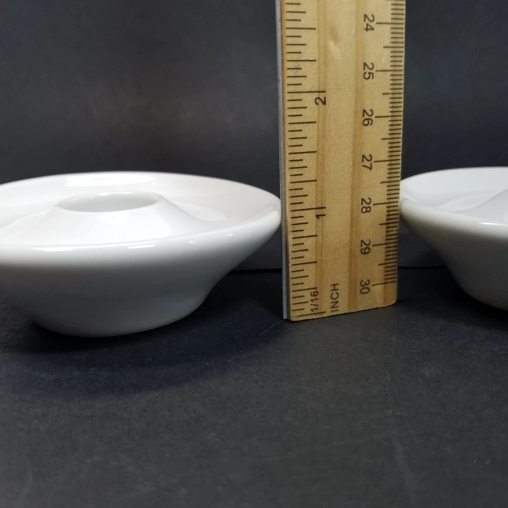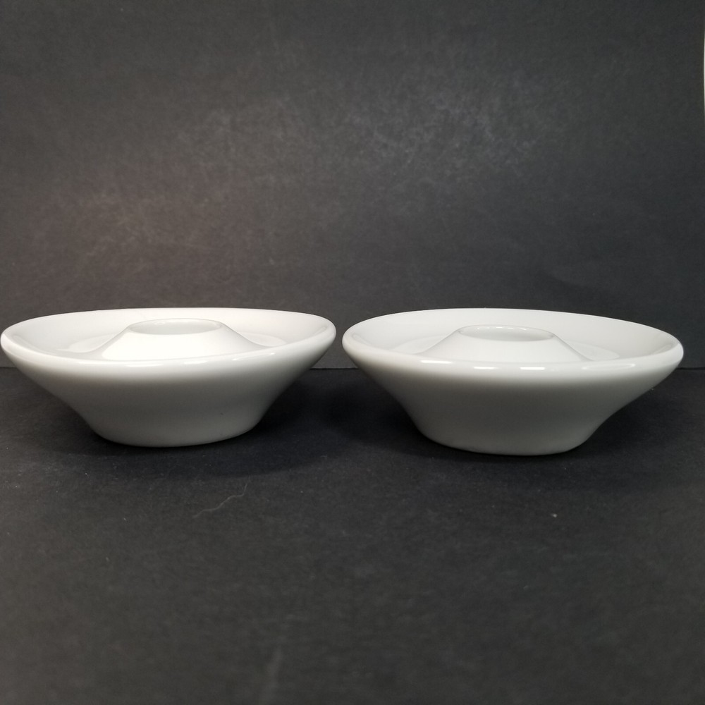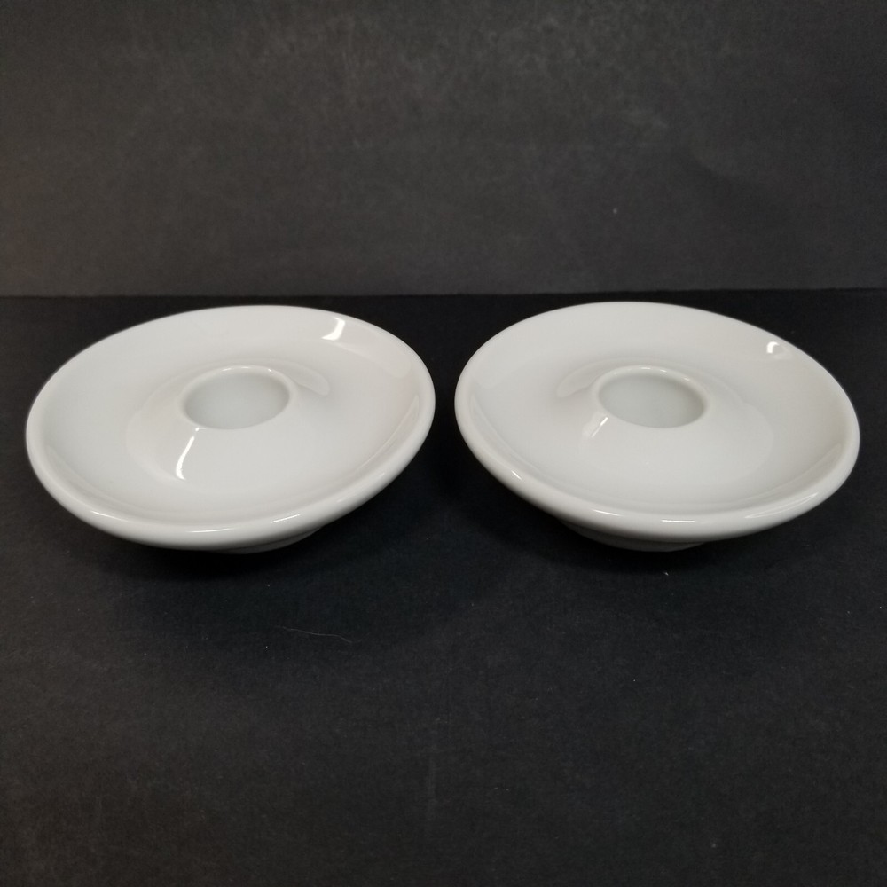Pier 1 Imports Taper Candle Holders White Porcelain Ceramic Japan Vtg. Candle holders measure 3 3/8" in diameter and 1" tall. They are in good condition, with no chips or cracks. Please see all photos for details. Thank you for looking and please contact me with any questions!