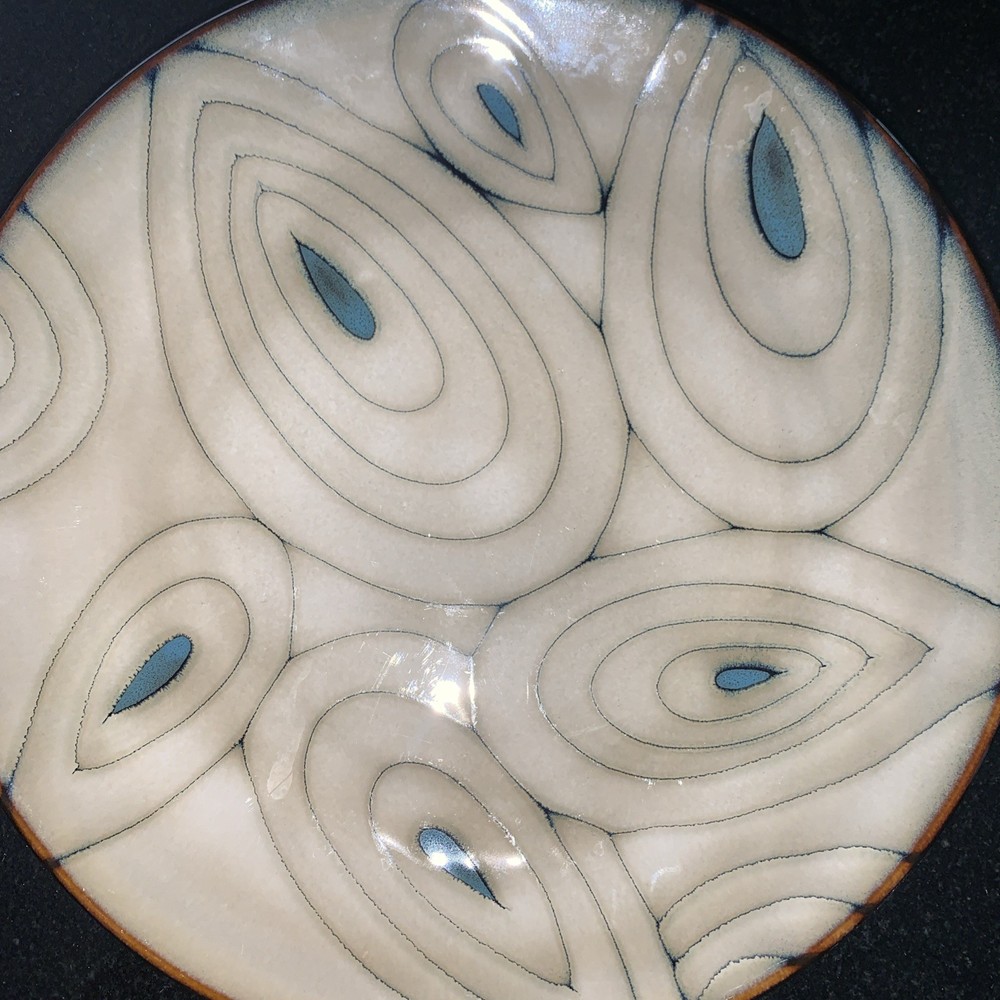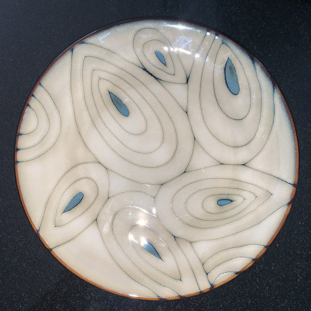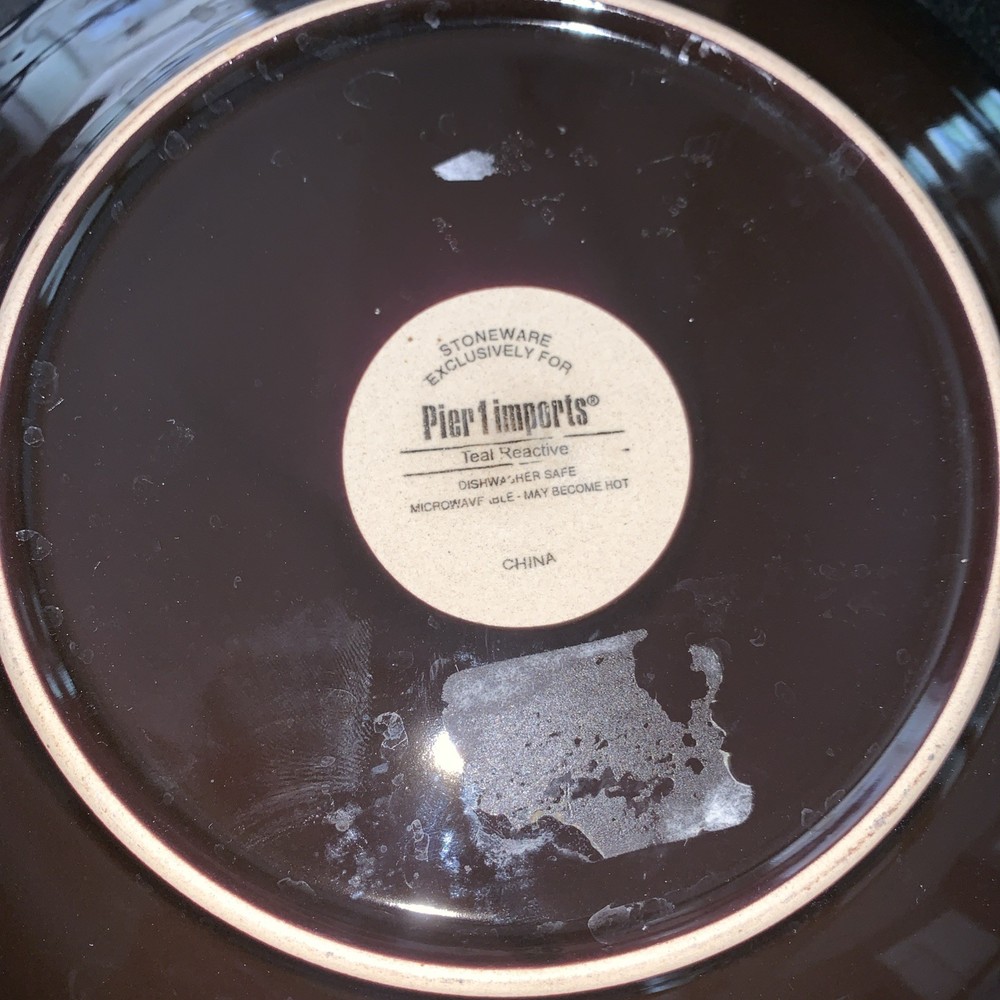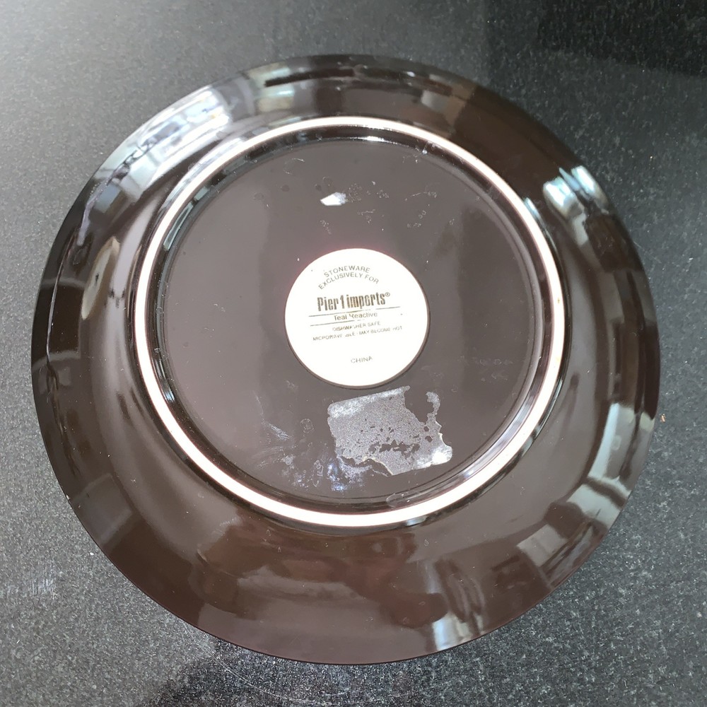 Enhance your dining experience with this exquisite Pier 1 Imports Teal Reactive Stoneware Salad Plate. Featuring a stunning peacock pattern, this decorative plate is a testament to contemporary style and functionality. Crafted from durable stoneware, it boasts a glossy finish that captures the eye and adds a touch of elegance to any table setting. Designed with convenience in mind, this salad plate is both dishwasher and microwave safe, ensuring easy care and versatile use for all occasions. Its 8.5-inch round shape fits perfectly in your hand or on your plate rack, making it an ideal choice for your home or as a replacement piece. With its stackable feature, it's also a space-saving addition to your collection.