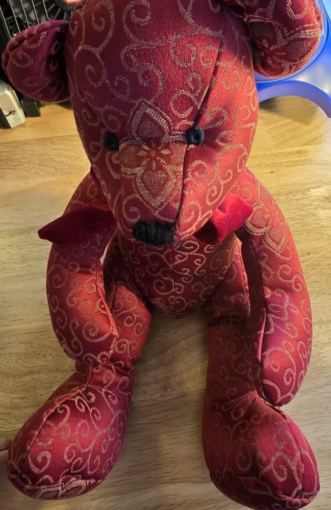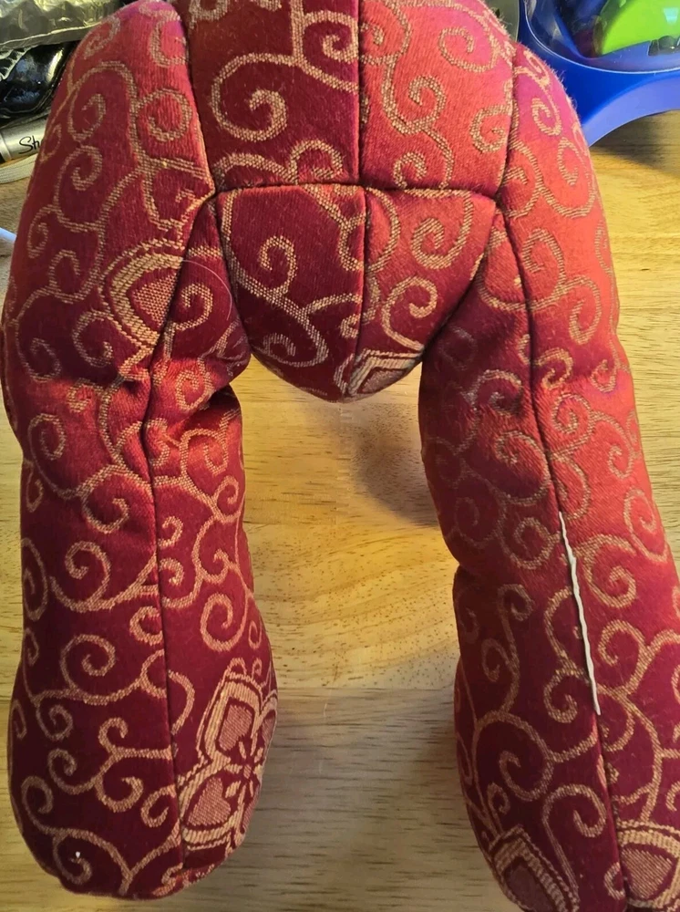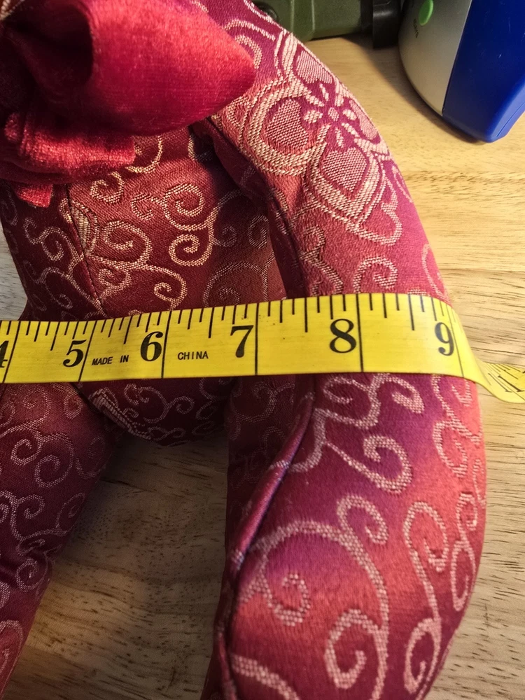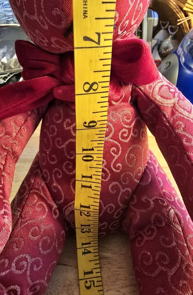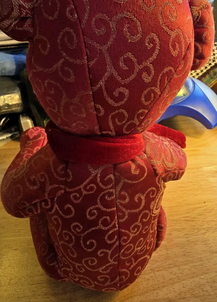 This adorable Teddy Bear plush stuffed animal from Pier 1 Imports is perfect for Valentine's Day or any day. With its charming red scroll design and bow tie, it is sure to bring a smile to your face. Measuring at a medium size of 16 inches, it is easy to cuddle and play with. The Pier 1 brand is known for its quality and this Teddy Bear is no exception. Its soft and huggable material will make a great addition to any stuffed animal collection. Whether you're looking for a gift for someone special or just want to treat yourself, this Teddy Bear is sure to bring joy.