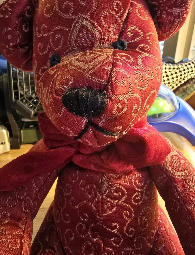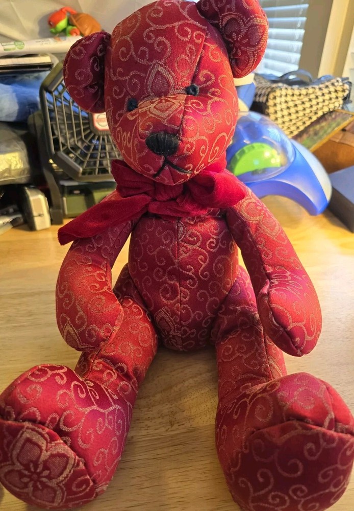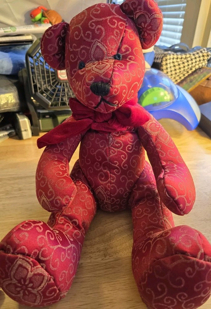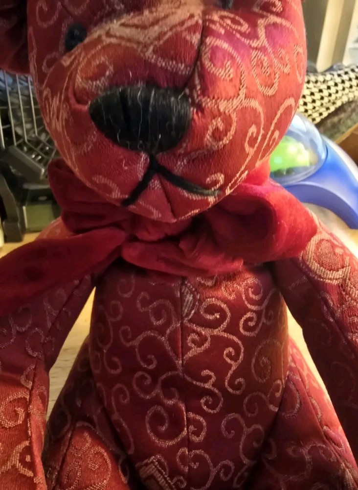 This adorable Teddy Bear plush stuffed animal from Pier 1 Imports is perfect for Valentine's Day or any day. With its charming red scroll design and bow tie, it is sure to bring a smile to your face. Measuring at a medium size of 16 inches, it is easy to cuddle and play with. The Pier 1 brand is known for its quality and this Teddy Bear is no exception. Its soft and huggable material will make a great addition to any stuffed animal collection. Whether you're looking for a gift for someone special or just want to treat yourself, this Teddy Bear is sure to bring joy.