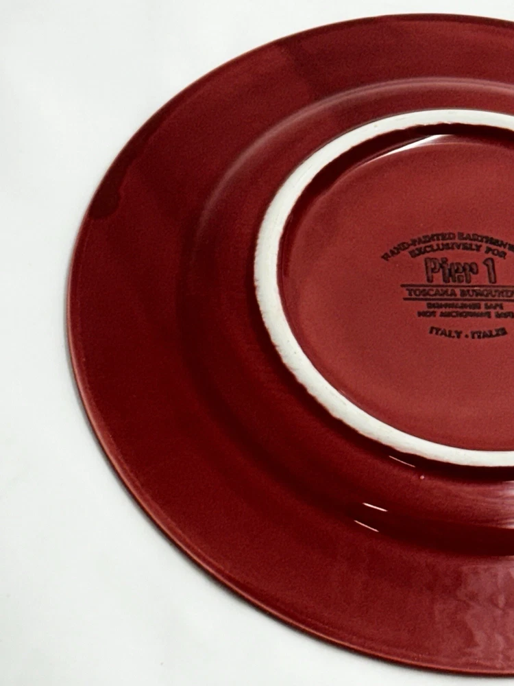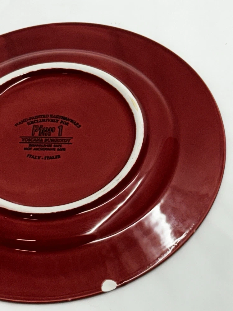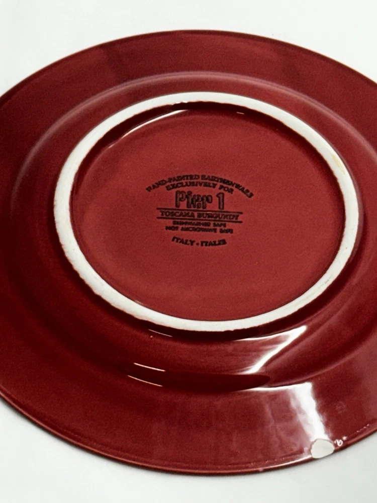 Pier 1 Imports Toscana Burgundy Handpainted Earthenware Salad Plate8.75 INCH Plate is in pre-owned condition. It has a chip on the bottom as seen in the photos. Thank you for looking