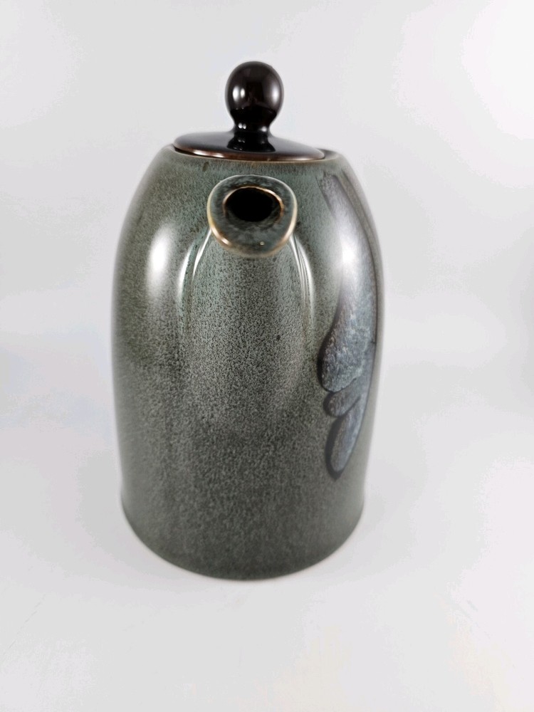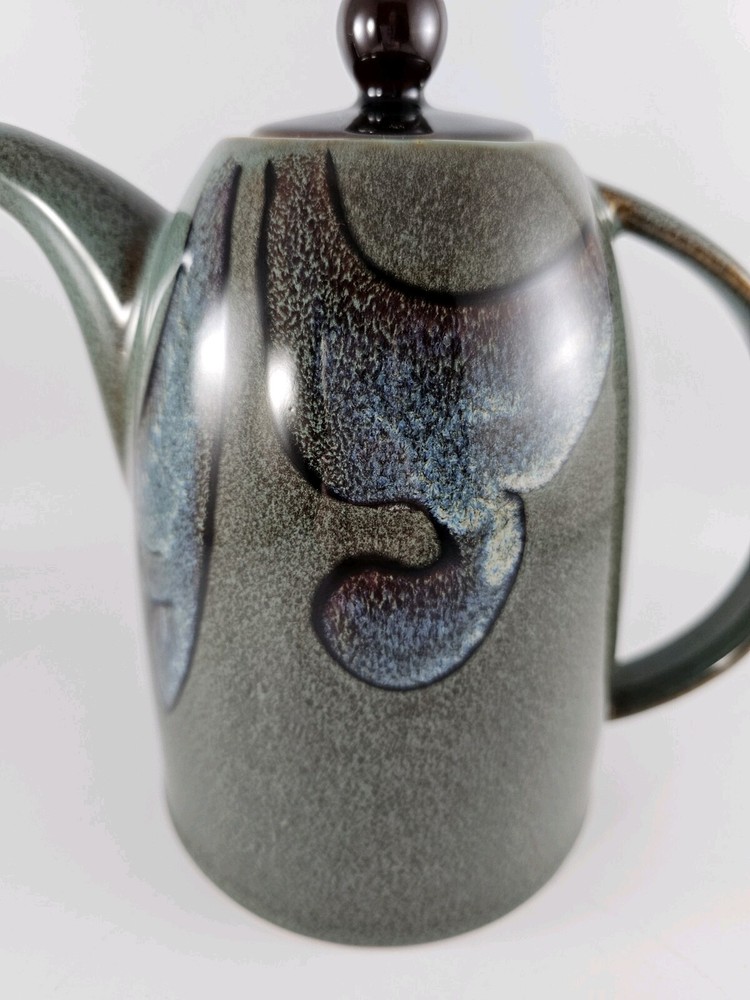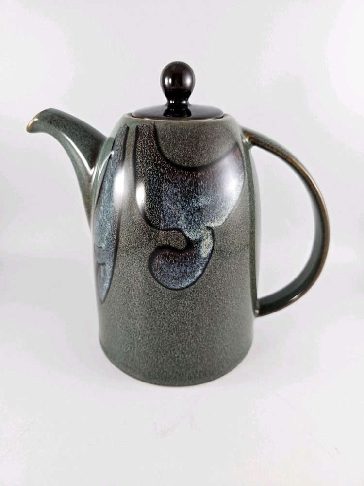 Pier 1 Imports Tranquil Blue Green Teapot Abstract Design Speckled . Height 7", spout to handle 9" pot diameter 4.5" The pot is preloved and in excellent condition. No chips or cracks.