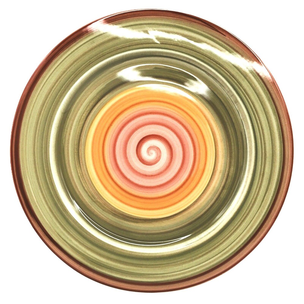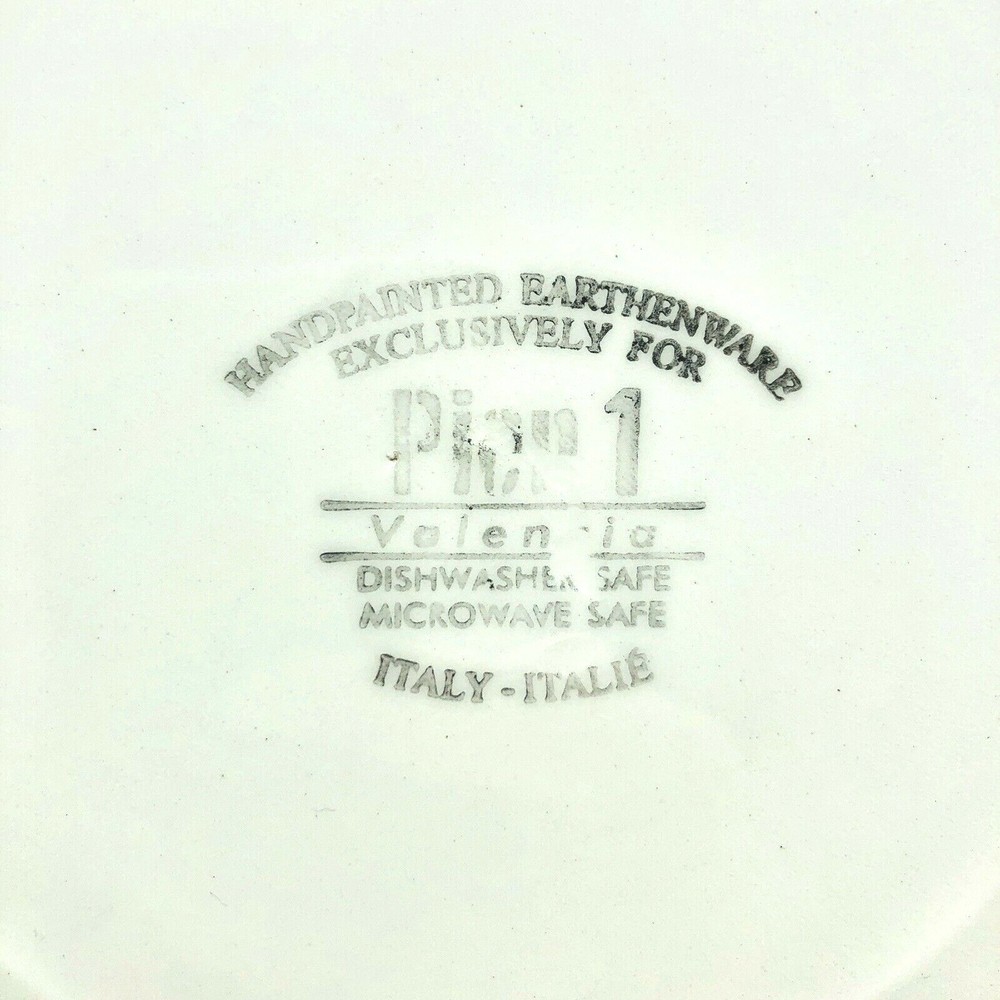 Pier 1 One Valencia Dinner Plate Decorative Ceramic Green Orange Red Swirl Italy Measures 12” in diameter Condition - Excellent preowned condition! There are small 3 marks on the back, perhaps from having been hung. Please see pictures. Will ship within 1 business day of receiving payment. Fast handling time!
