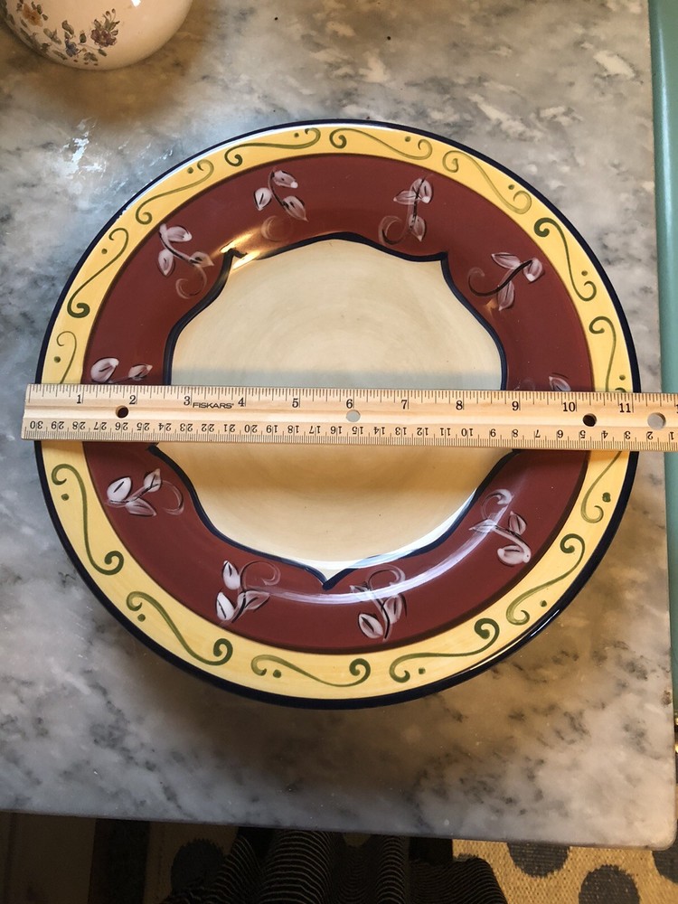Very large dinner plates (2) No imperfections, cracks, chips, crazing Variations in saturation of hand painting may be present Photos are part of description