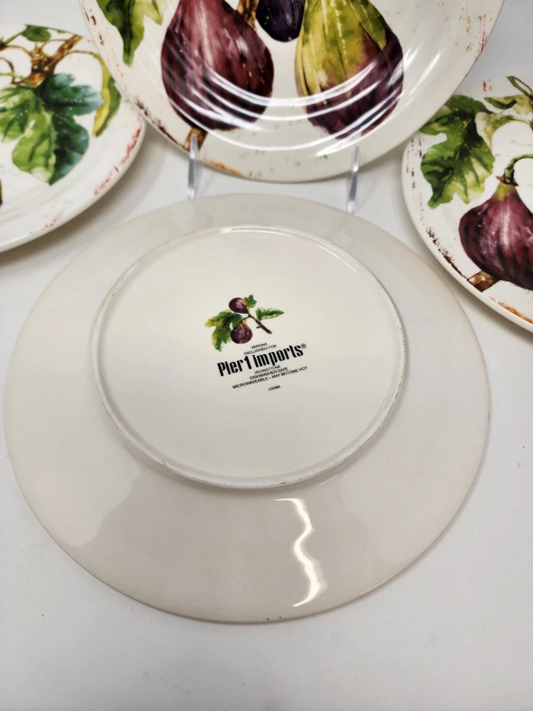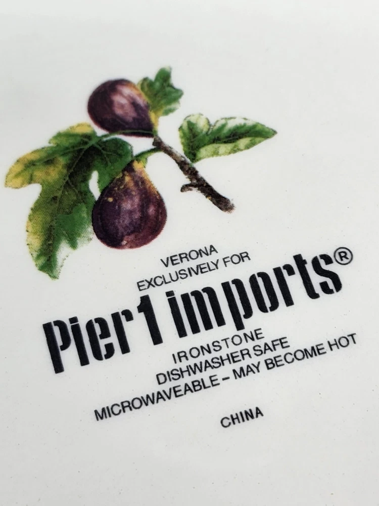 All of these are in perfect condition with no chips or cracks and are new with tags. Please check out my other listing for coordinating items to this set. Price is per plate! Add a touch of vintage charm to your table setting with this beautiful Pier 1 Imports Verona 9” Salad / Luncheon Plate. The plate features a stunning botanical and dates! fruit, tree design that is perfect for all occasions. Made of high-quality ironstone, this limited edition plate is not only break-resistant but also microwave and dishwasher safe. The round plate has a diameter of 8.75 inches and is stackable for easy storage. It is finished with a glossy look and printed with the brand’s backstamp. This art pottery plate is a perfect addition to your collection and is produced in China using the pottery technique. Enjoy your salad or luncheon in style with this unique and functional plate!