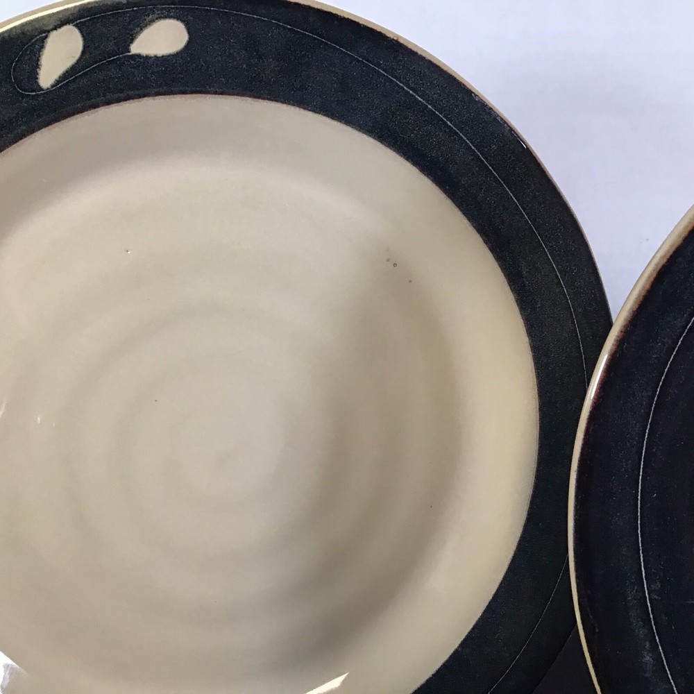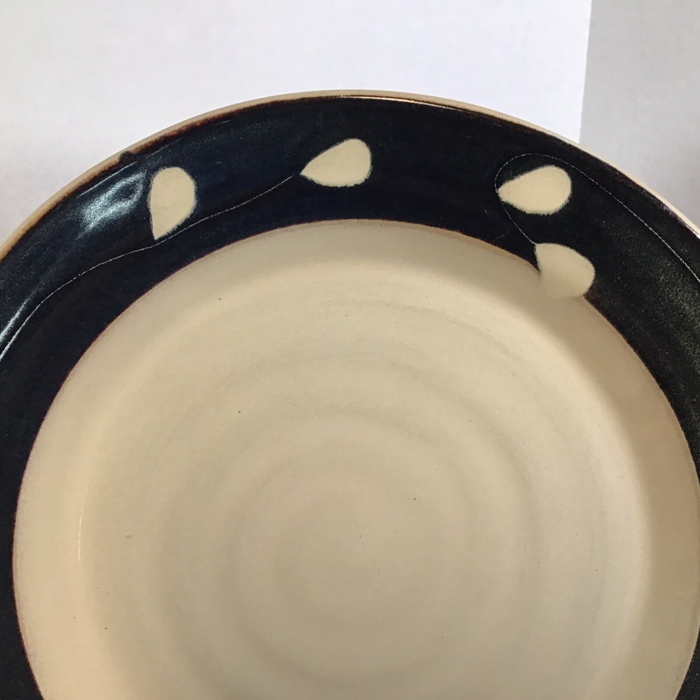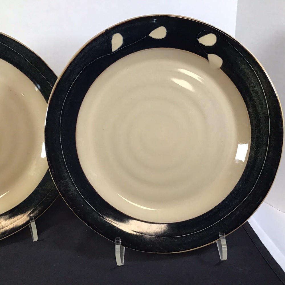 Up for your consideration are these Pier 1 Imports WHITE BLOSSOM Hand Painted 11” Dinner Plates, lot of 2. Beige with a Black Rim. Plates were used daily and show normal wear and tear for being a daily user. The Pier 1 back-stamp has worn off of both plates. Utensil marks are throughout the plates but plates have no chips, cracks or crazing. As with all my listings if you’re not satisfied with my described condition, please take advantage of my return policy. Thanks for looking at my listing. EE