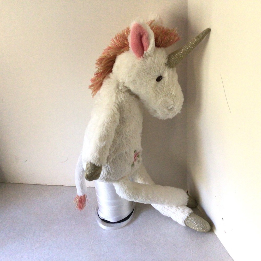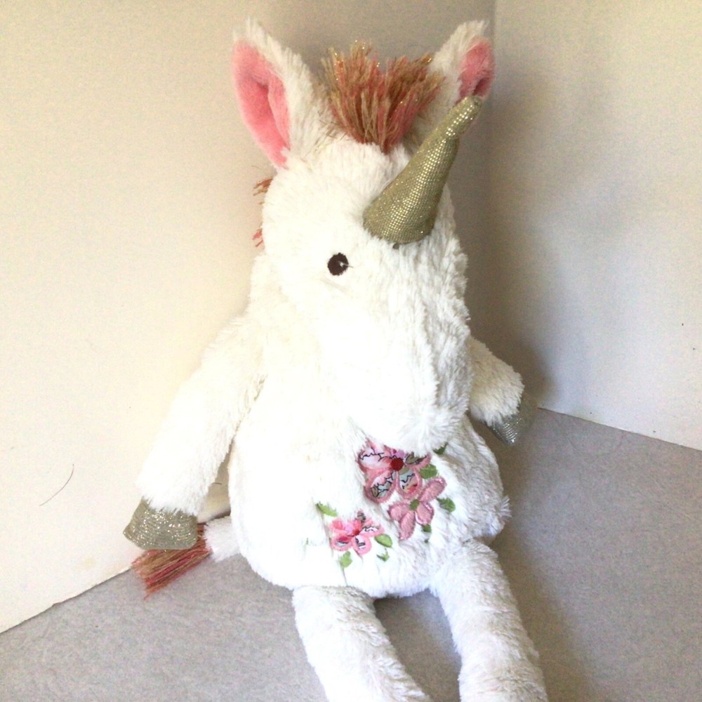 Pier 1 Imports White Unicorn Plush 19" Floral Embroidered Soft Stuffed Animal...