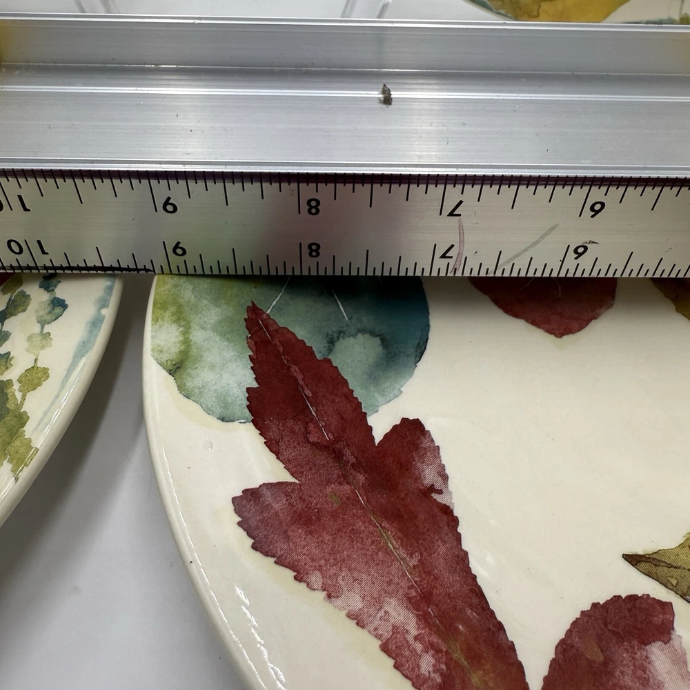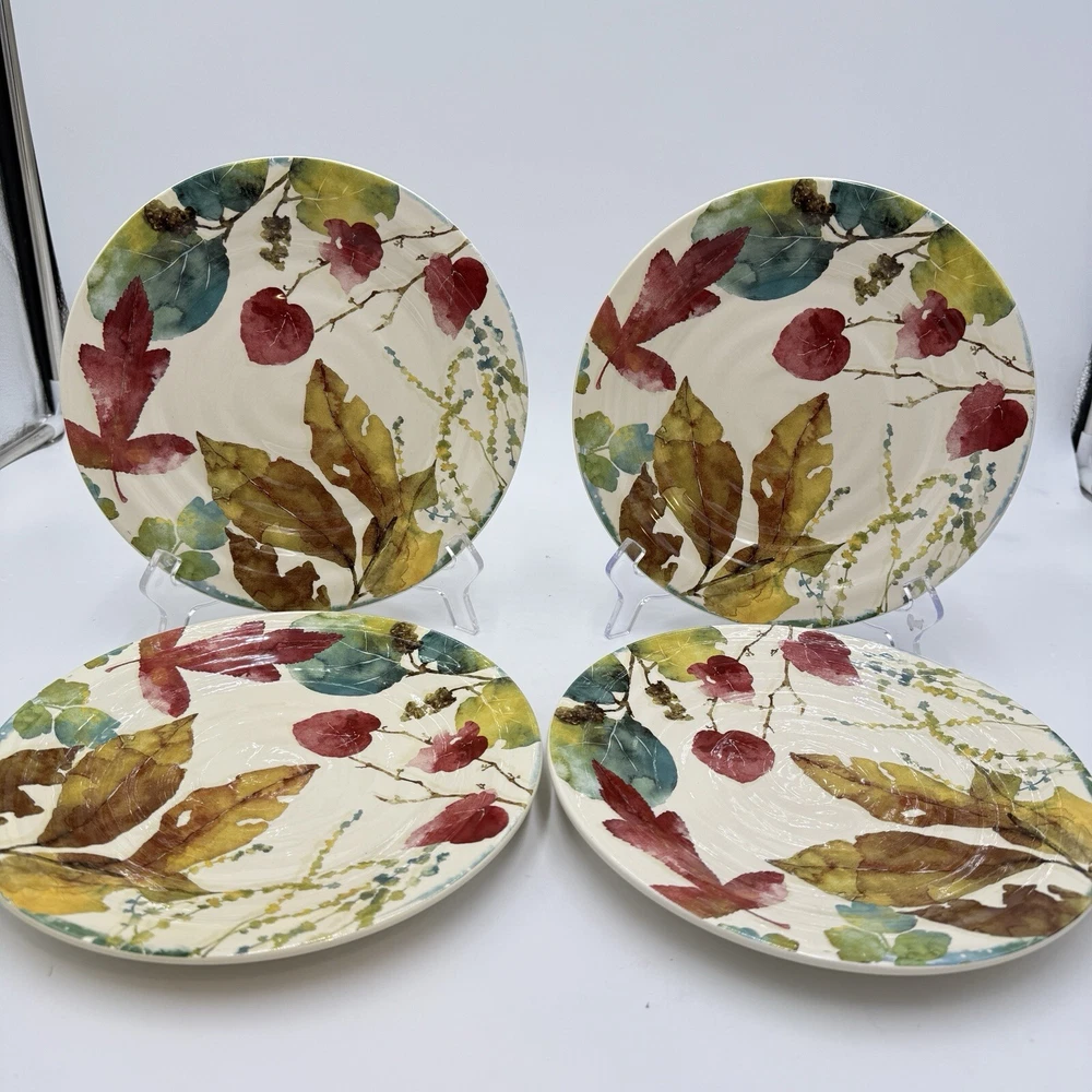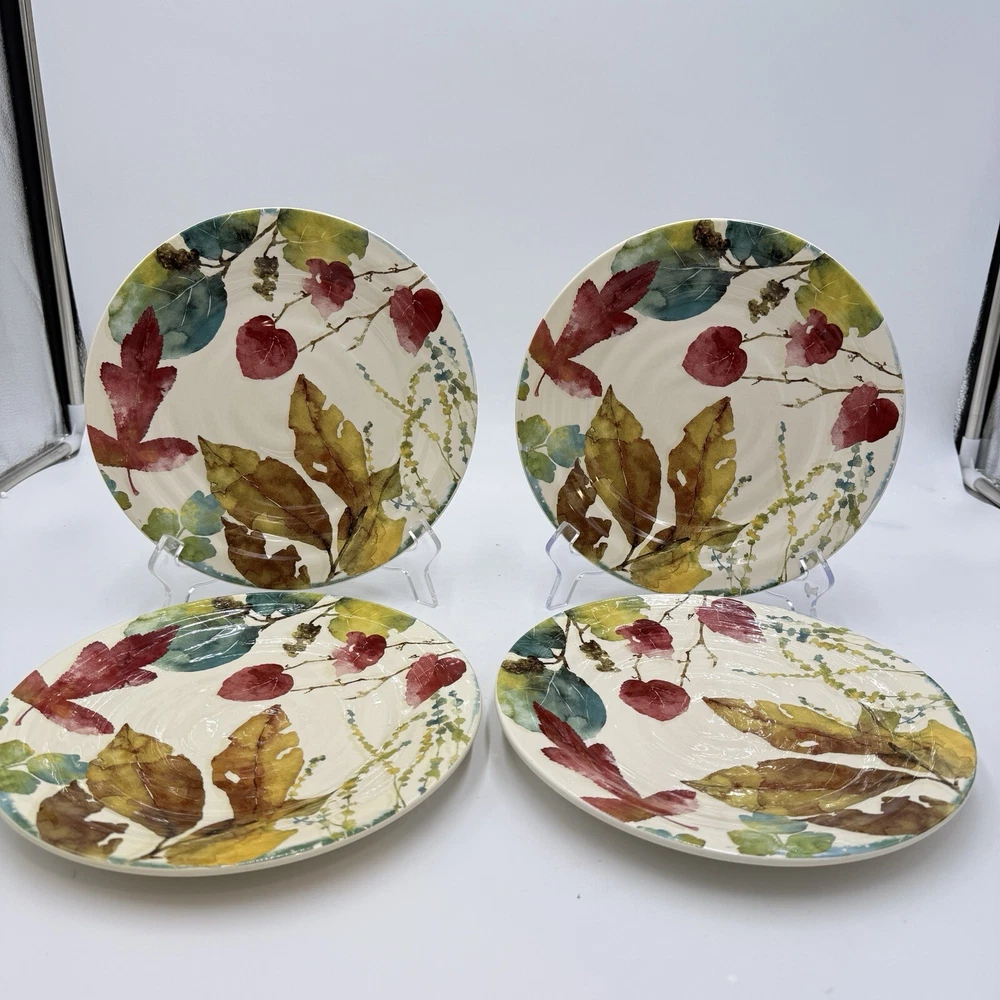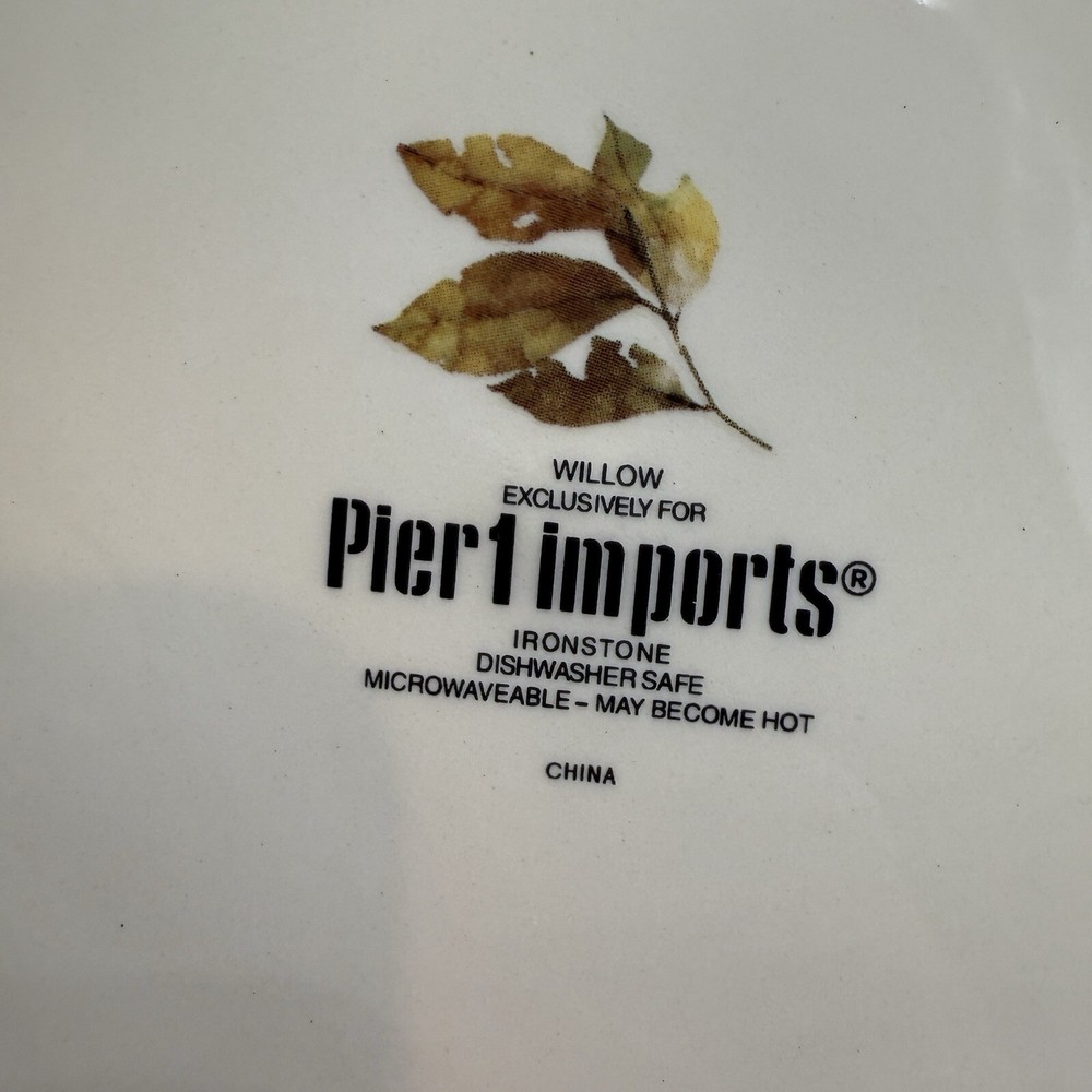 Add a touch of seasonal charm to your dining table with this set of four Pier 1 Imports Willow Ceramic Salad Plates. The plates feature a beautiful leafy willow pattern in a multicolor design, perfect for all occasions. Each plate measures 9 inches in diameter and has a round shape, making them a great addition to any plate set. These vintage plates are made of high-quality ceramic material with a glossy finish, ensuring they will last for years to come. The set includes four plates and is an original product from the Pier 1 Imports brand. Perfect for any American Directoire style setting, these plates will add a touch of elegance to your dining experience.
