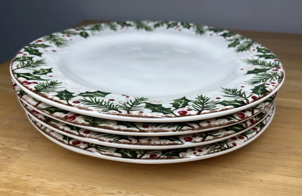 Pier 1 Imports Winter Wonders 4 Dinner Plates 10.5" Holly Berry Christmas This item is preowned but remains in very good condition. Tags were removed from the back but some of the sticky residue from the sticker remains. Unsure if these were ever used. See photos for overall style, condition, and measurements. Photos provide the best description. Beautiful set ready to be displayed and enjoyed!