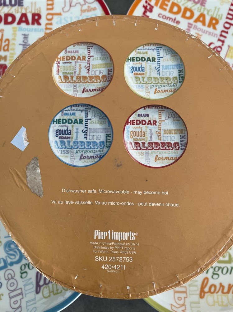 Pier 1 Imports World Cheese Plate Complete Set 4 Assorted Plates Appetizers 6.5". In original packaging