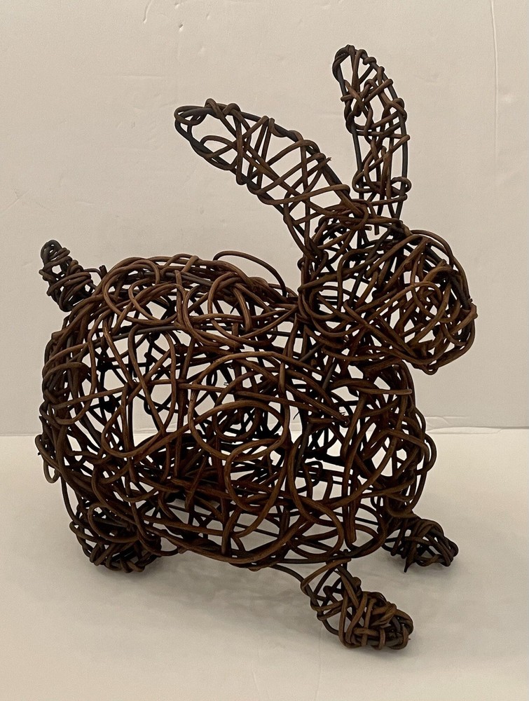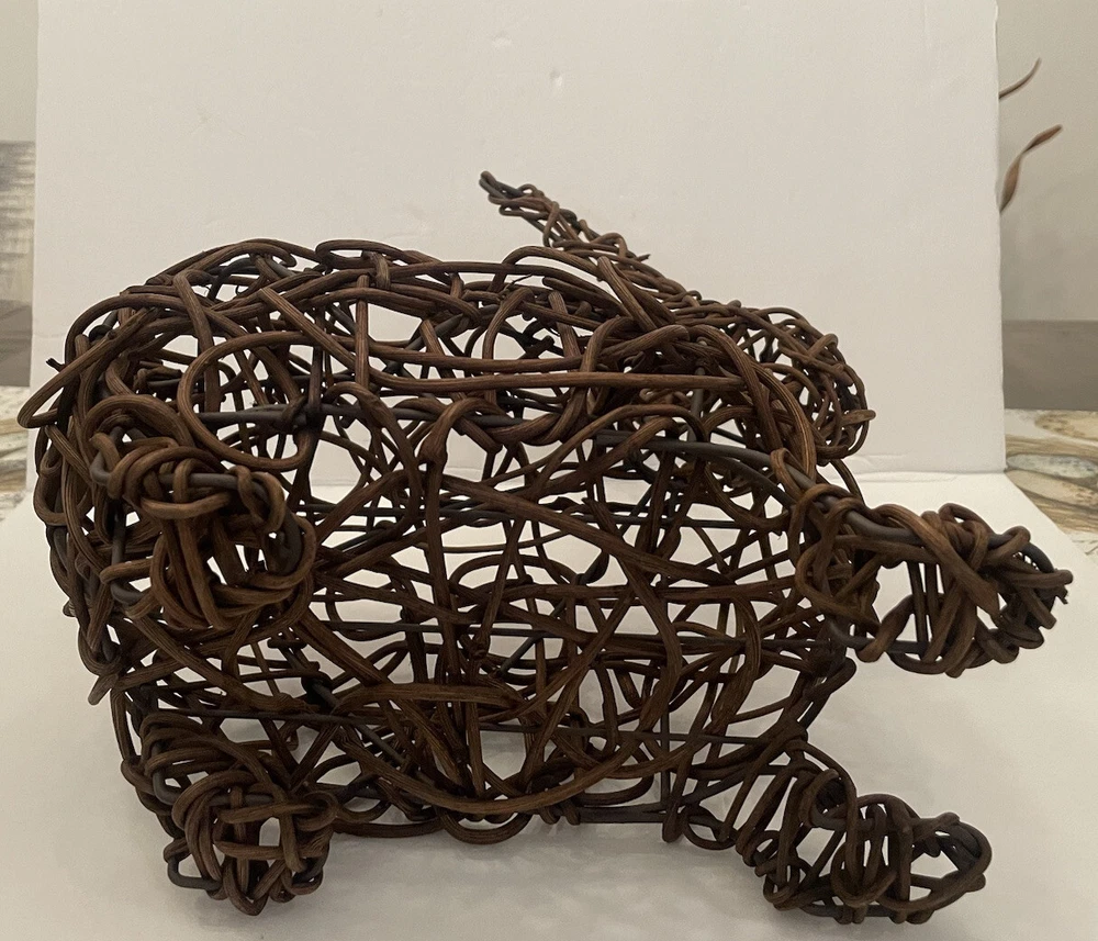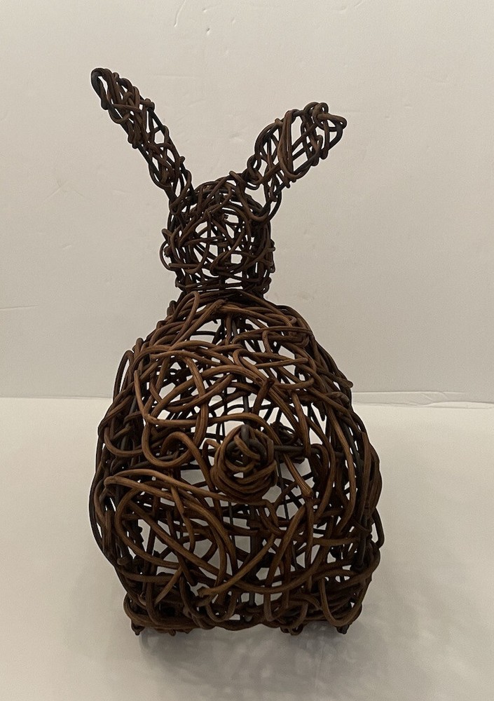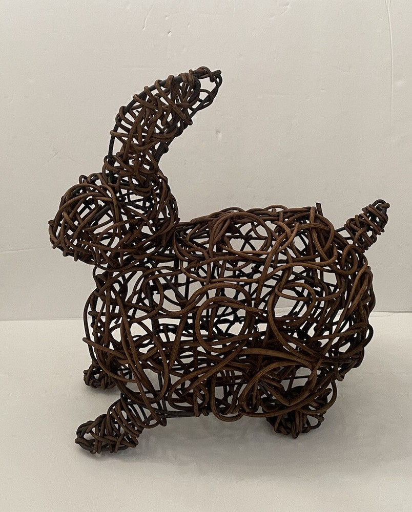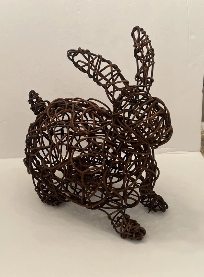 This charming decorative piece from Pier 1 Imports features a woven grapevine rabbit that adds a touch of whimsy to your farmhouse-themed home décor. The rabbit's intricate design and attention to detail make it a unique addition to your collection. Crafted with the utmost care, this piece is perfect for anyone who loves rabbits or wants to add a touch of nature to their home. Its farmhouse style fits perfectly with any rustic or vintage design scheme. Use it to decorate your living room, bedroom, or even your garden. The possibilities are endless! Approximate size is 11.5 inches in length by 12 inches high by 5 inches wide. The left ear has one loose strand, which can be glued easily, however, it stands up just fine as you can see in the picture. Thank you for looking.