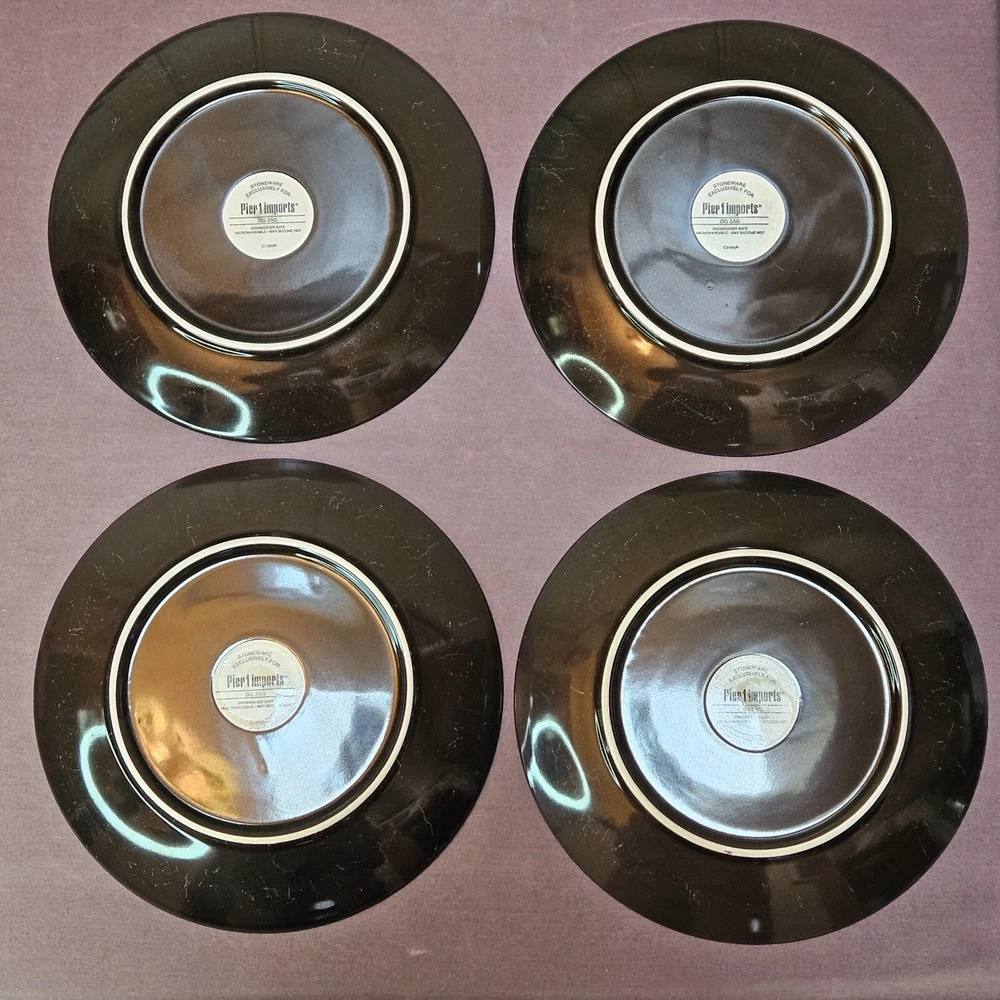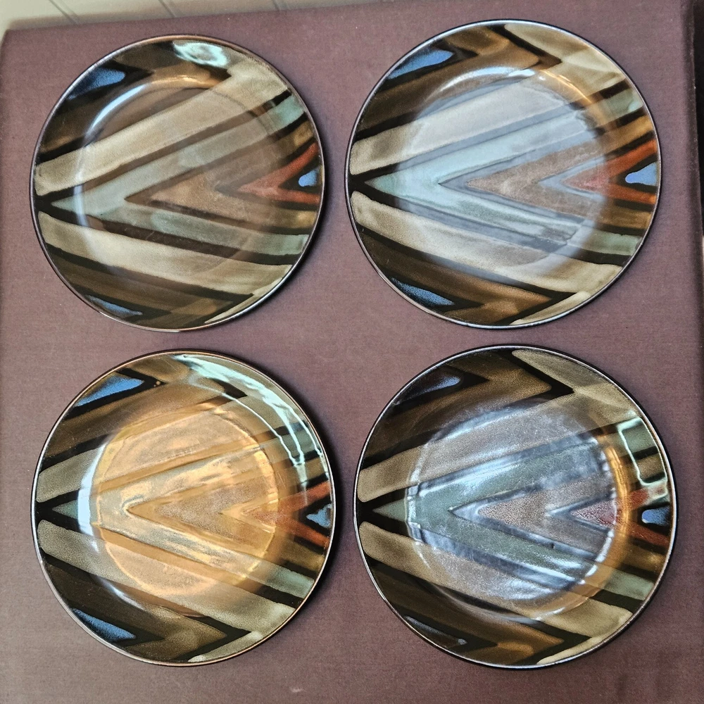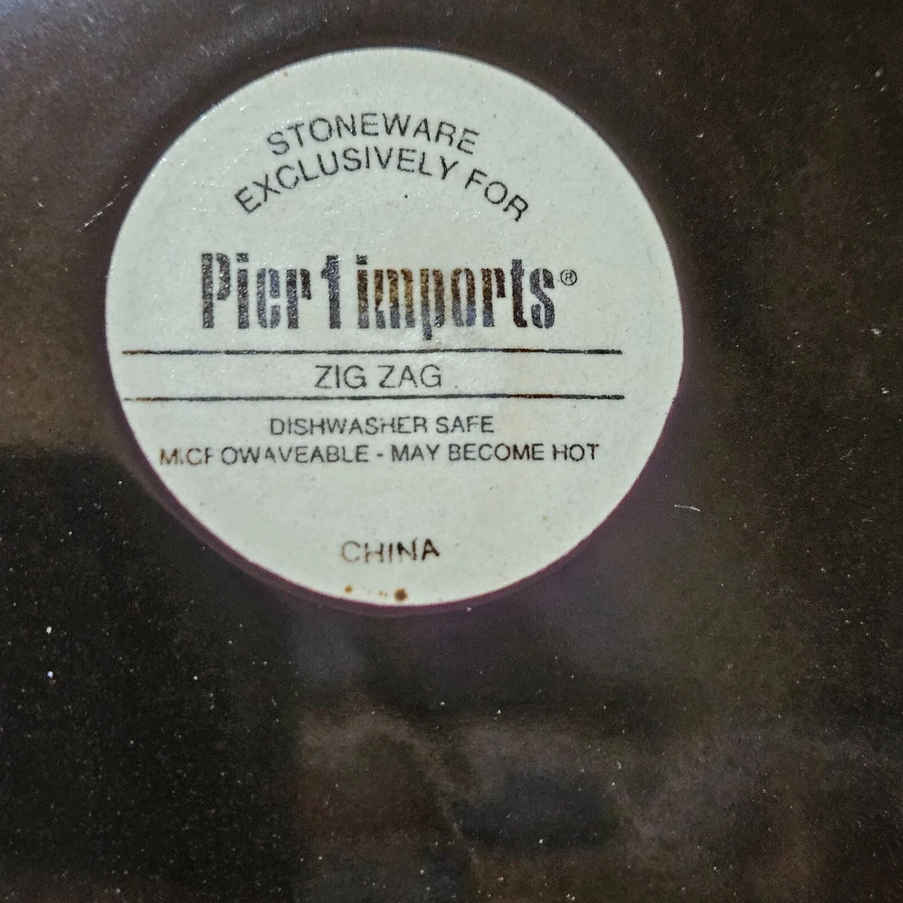 Welcome! ITEM ; For your consideration… Pier 1 Imports Zig Zag 8 ¼” Salad Dessert Plate Stoneware Lot of 4 Plates Please look at all the pictures as they are part of the description. CONDITION; AS-IS, Pre-Owned. Clean. S cratches and scuffs from use and cleaning . No chips, cracks or breaks. Light water spots. Good usable condition. (see all pictures for references to overall quality) Please ask any questions before purchasing. SHIPPING ; Free economy shipping. There are no guarantees on how long the item(s) will take to get to you. I will drop off the item(s) the next business day after payment is made and will get a delivery scan once dropped off. After that point, I am not responsible for the time it takes to get to you. I do my best to expedite the shipping process to the point of dropping the item(s) off but from that point it is out of my control. If you do not agree with this, please do not purchase. RETURNS ; I will accept returns ONLY if I have misrepresented this item in any way or if it is damaged on arrival. If there is a problem when you receive it, please contact me immediately to discuss the nature of the return. Please do not return the item until we have agreed upon said return and I have asked you to start the return process with eBay. I strive to package these items very well so that they will arrive in the same condition as listed. SALES TAX WILL BE ADDED TO FINAL BID BY EBAY IF REQUIRED BY THE STATE YOU ARE SHIPPING THIS ITEM TO. Please take a look at my other items. HAVE A GREAT DAY.