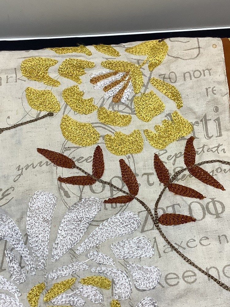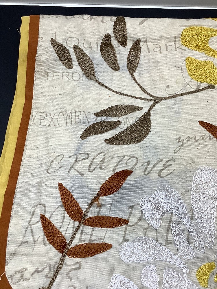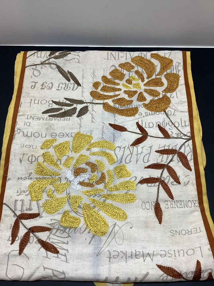 Pier 1 Imports embroidered Fall themed table runner floral with leaves 72”x15”. A couple small stains but they blend in nicely...