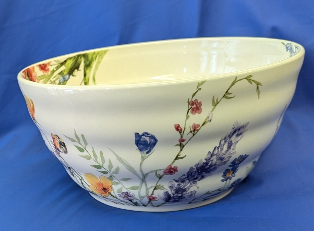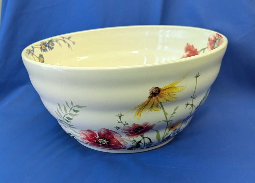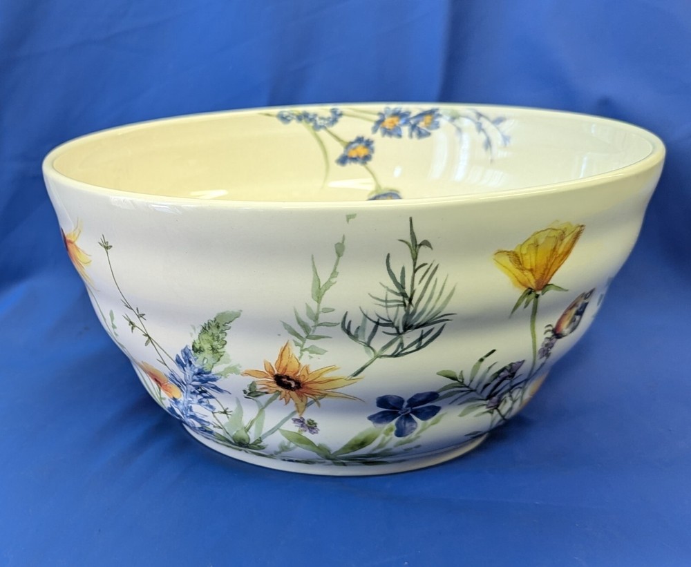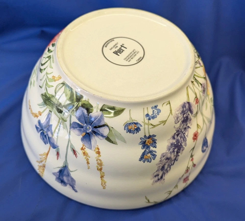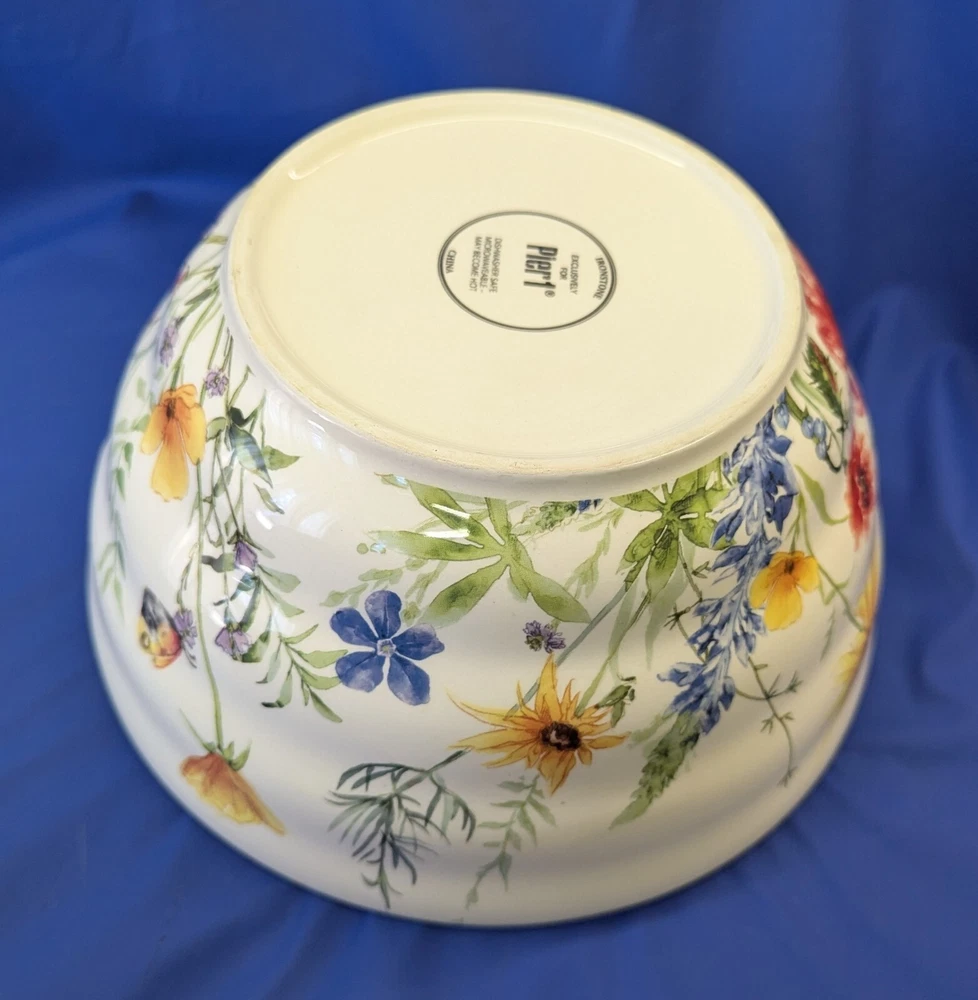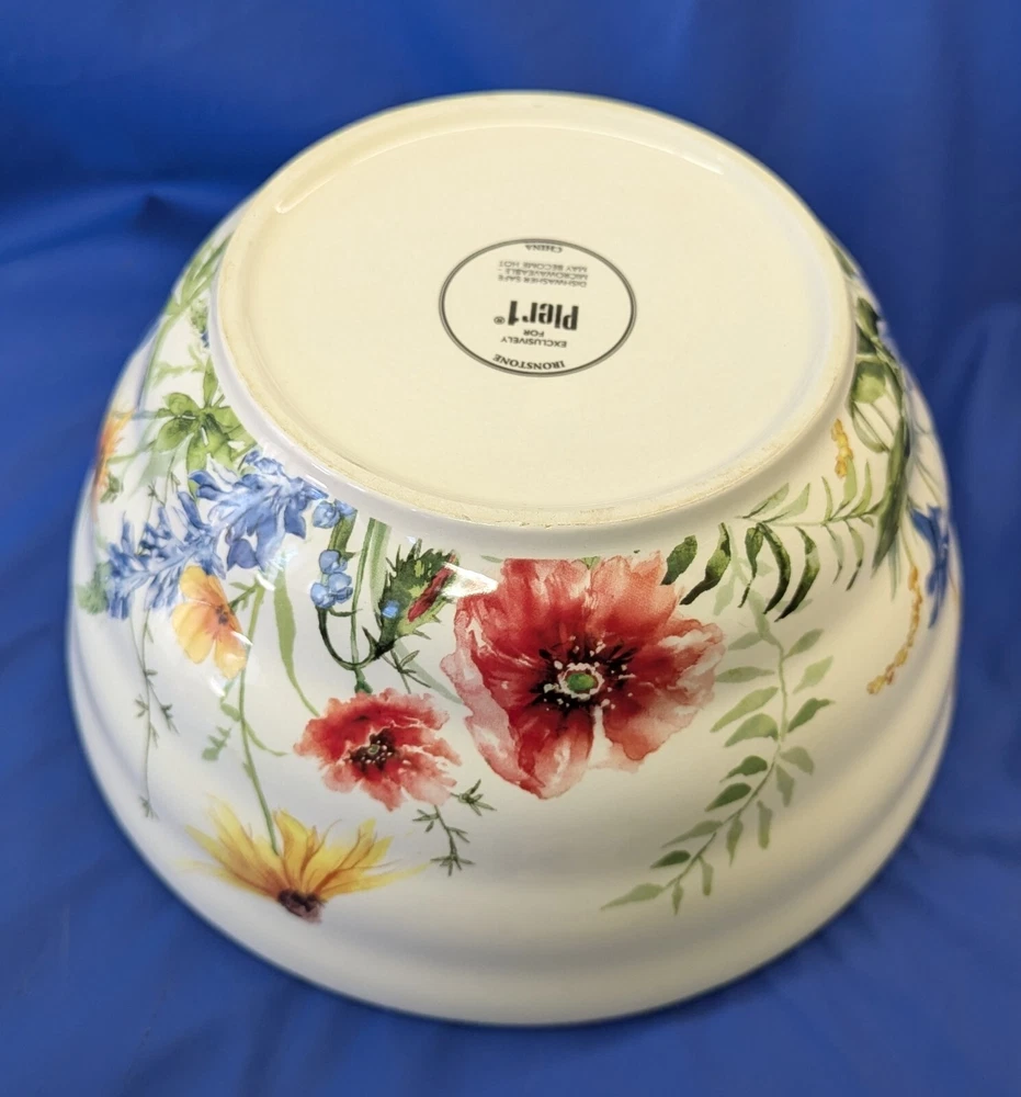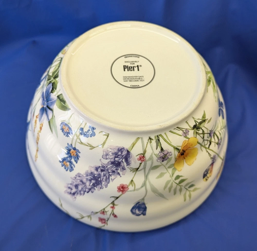 Elevate your dining experience with the Pier 1 Imports Ironstone 9” Serving Bowl, featuring a charming wildflower design that brings a classic, yet vibrant touch to any table setting. Crafted from durable ironstone, this serving bowl is both dishwasher and microwave safe, making it as practical as it is stylish. The round, shiny finish bowl measures 9 inches in diameter and 4.5 inches in height, ideal for a variety of serving occasions. Whether for everyday use or special gatherings, this multicolor piece is designed to complement a wide range of decor and is perfect for those who appreciate the blend of functionality and floral elegance.