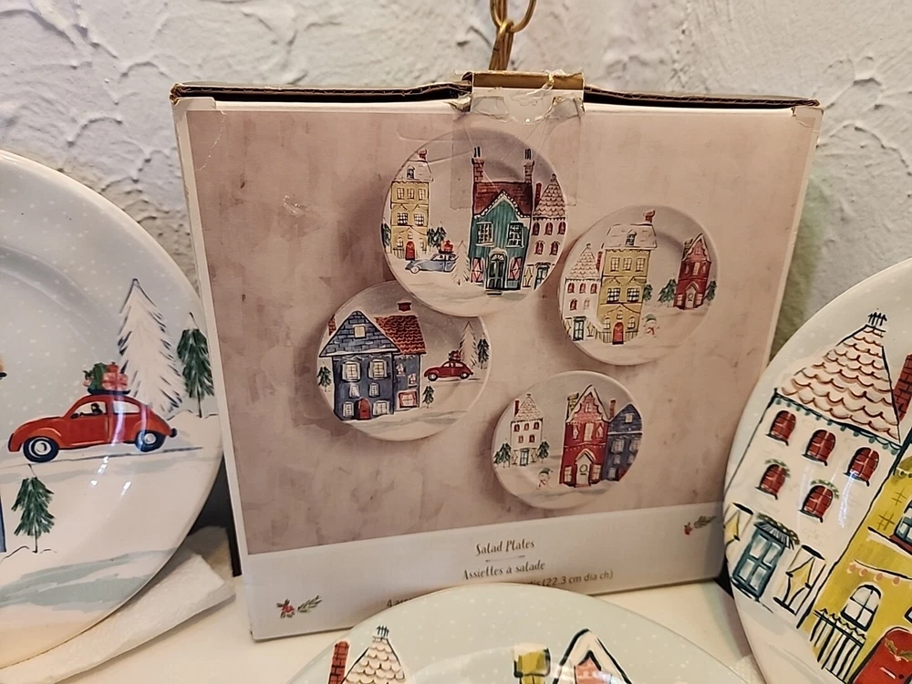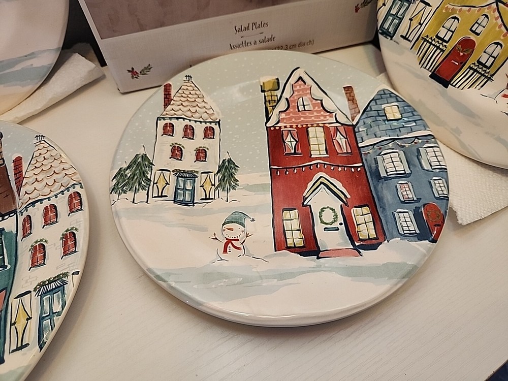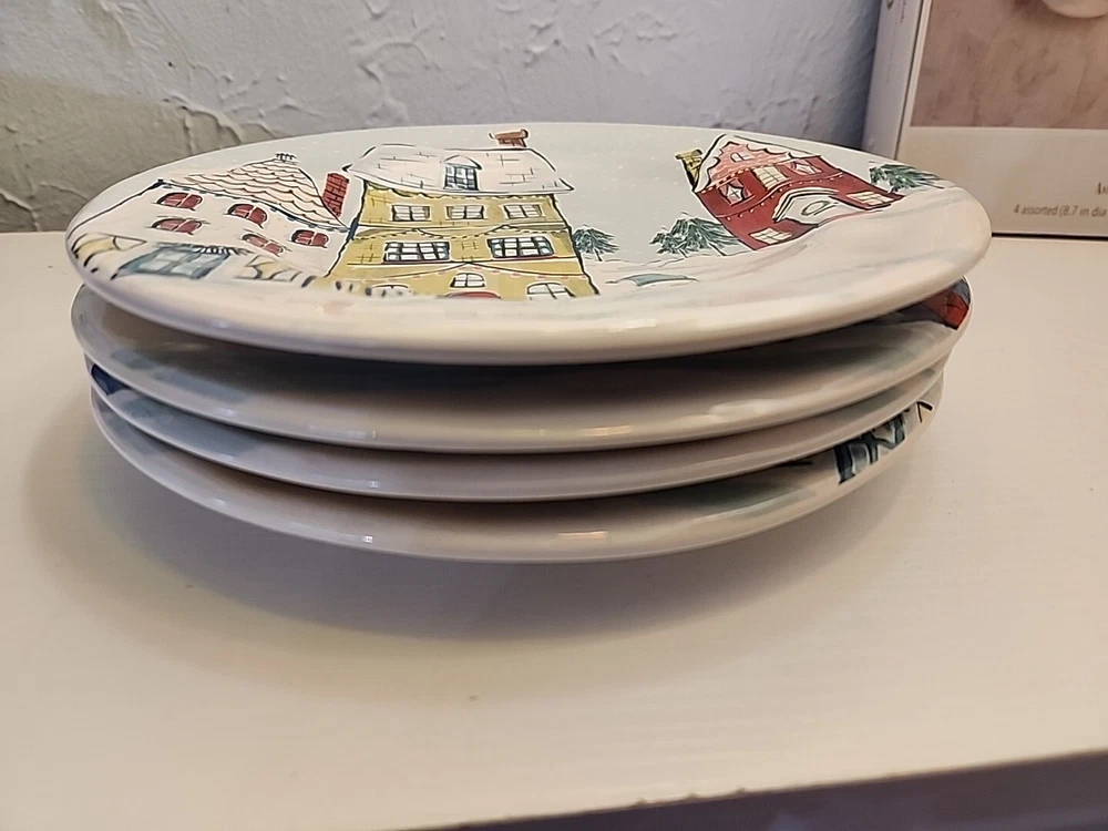 Pier 1 Ironstone Christmas Village Scenes w/Snowman 8.75” Salad Plates, Set of 4 Fast Free Shipping! Most Items Ship With in 24Hrs! About Me: I'm a single father, who sells on Ebay as a 2nd job to help ends meet. I buy odds and ends at thrift stores, yard sales, and retail merchants. I also buy broken down vehicles to part them out. If you are interested in a different part from a vehicle I have, feel free to ask. I have lots of inventory that isn't listed. I try to compare the prices of an item before listing it to offer fair deals. Thank You!