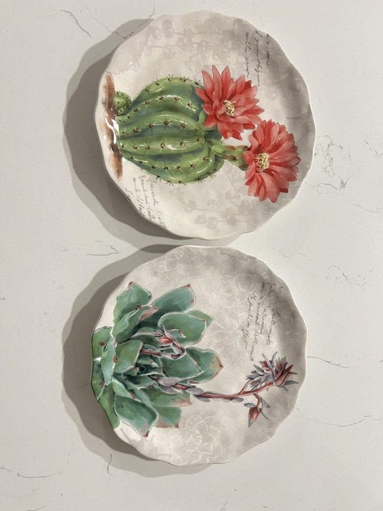 Pier 1 Ironstone Succulent Cactus Plates Set Of 2. Condition is Used. Shipped with USPS Priority Mail....