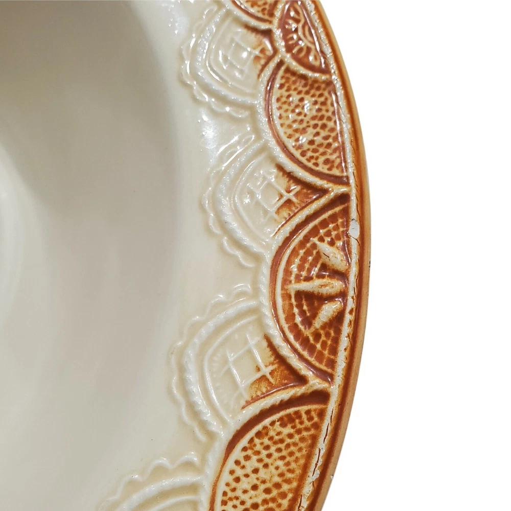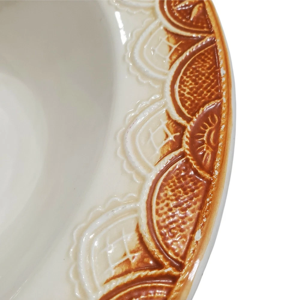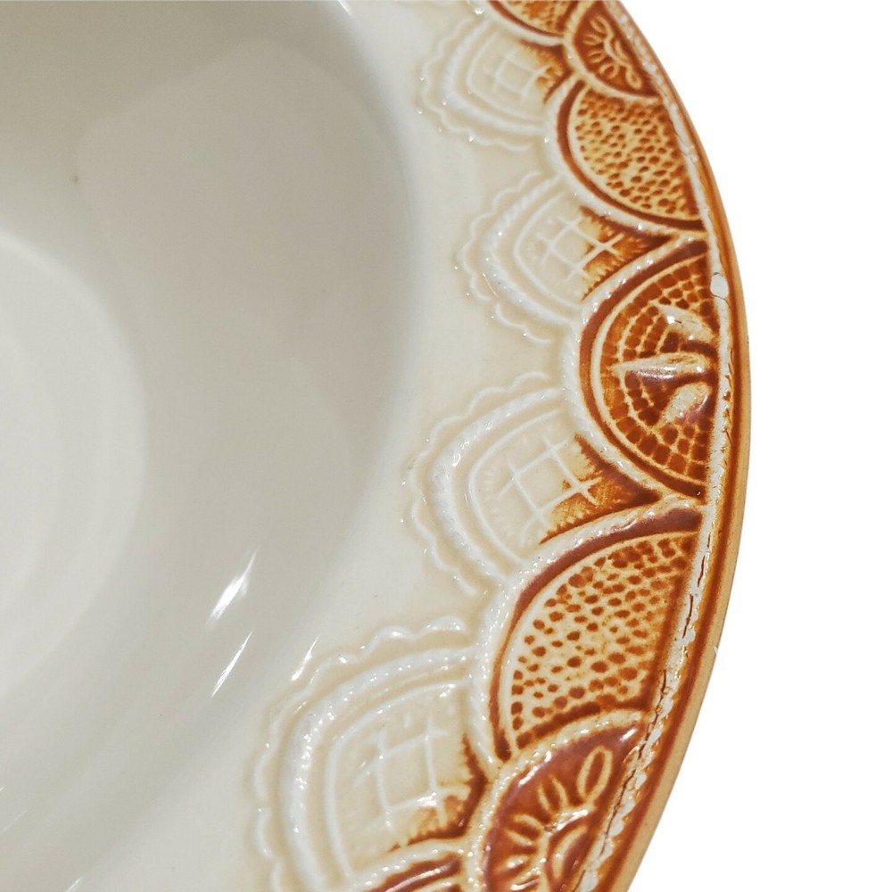 Pier 1 Italy Lace Designs Serving Bowl 11"x3" Orange Detail. See photos for condition