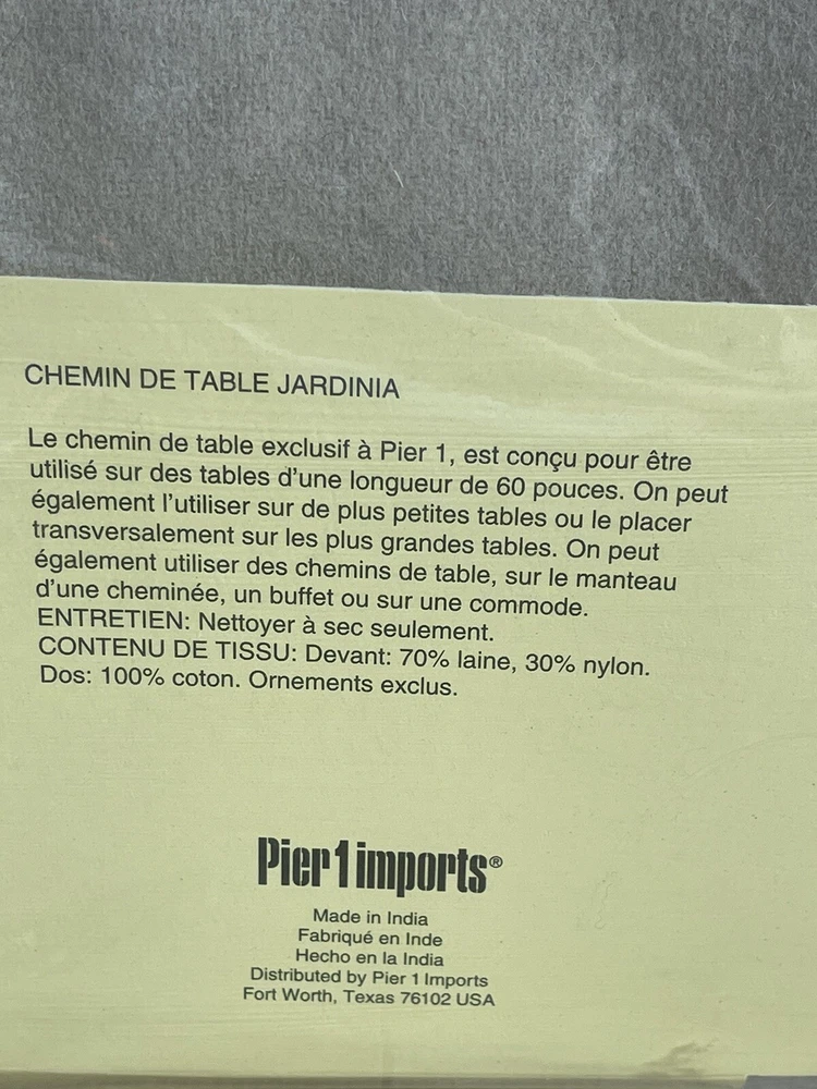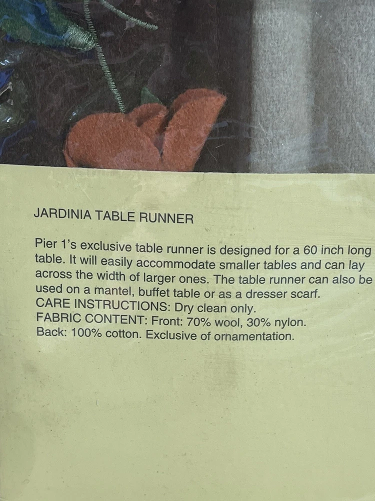 Pier 1 Jardinia Floral Table Runner 14” X 72” NIP. New never used. See all photos....