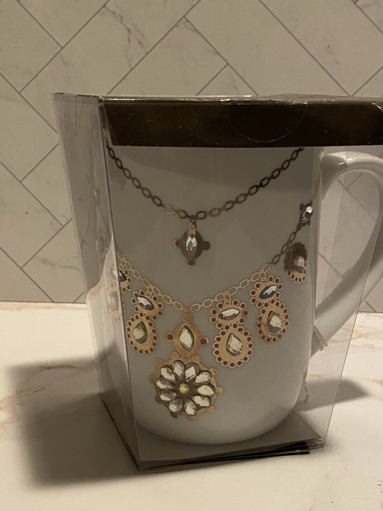 New In Box Pier 1 Jewel Gold Chain Jeweled Mug White...