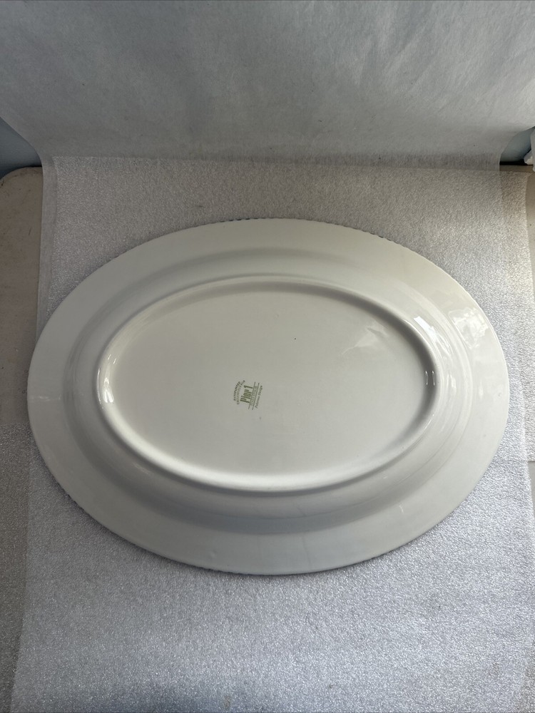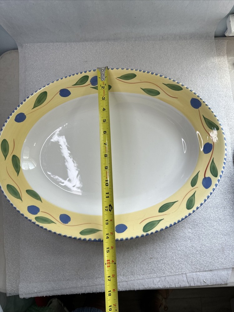 Pier 1 Large Oval Palermo Design Serving Platter Green Blue Leaves Italy...