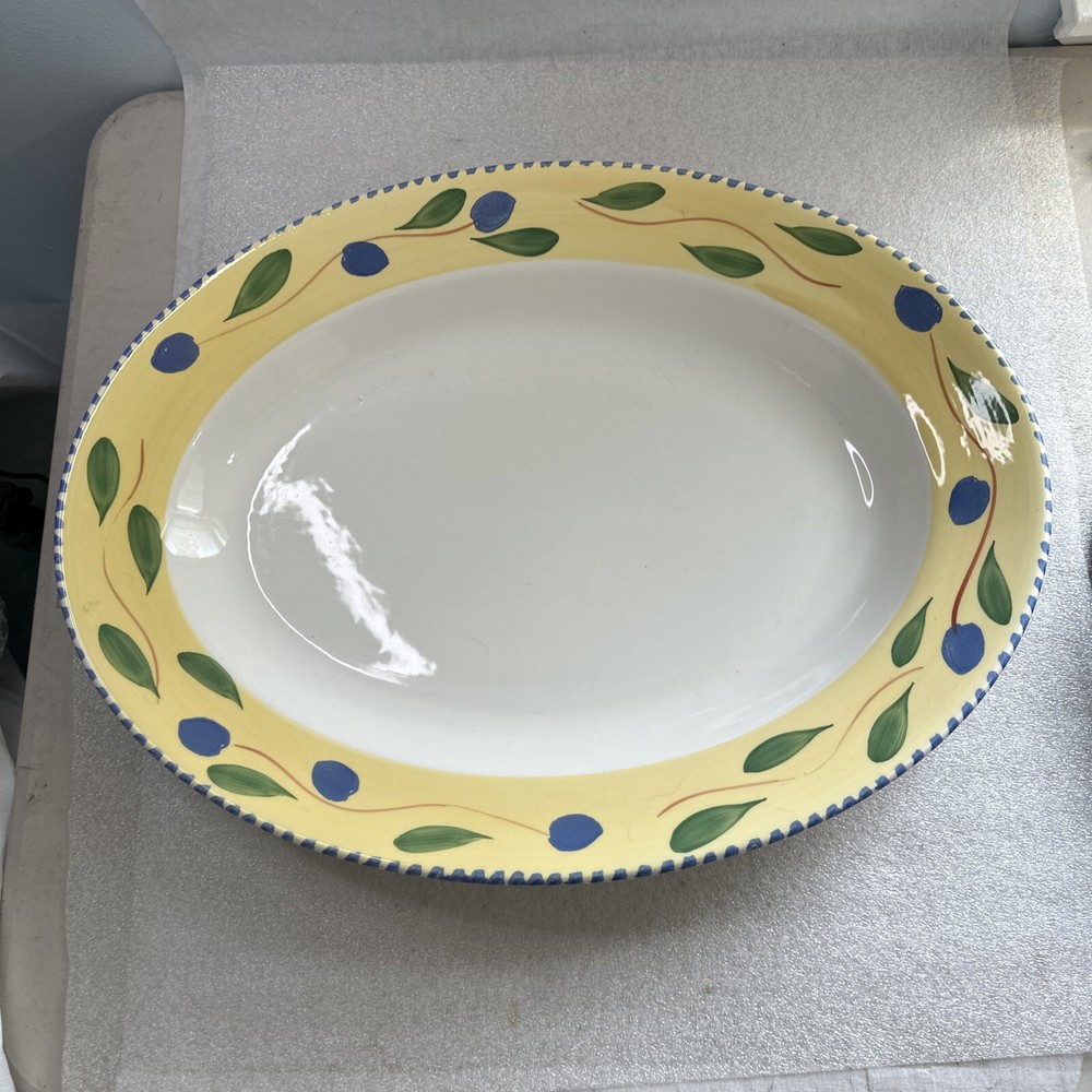 Pier 1 Large Oval Palermo Design Serving Platter Green Blue Leaves Italy