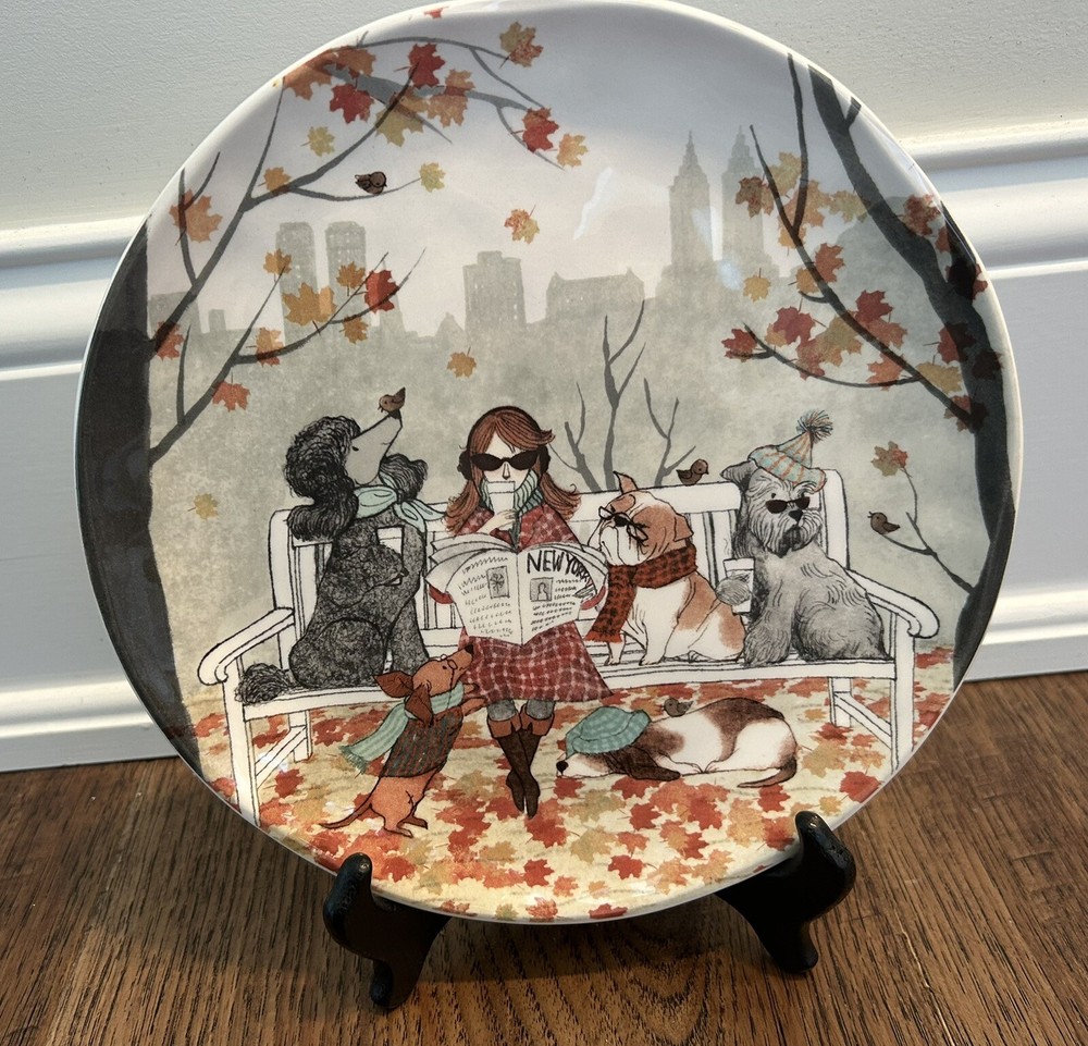 New with Tag 9" Lazy Sunday Pups Plate from Pier 1 New York Central Park Dog Park in the Fall...