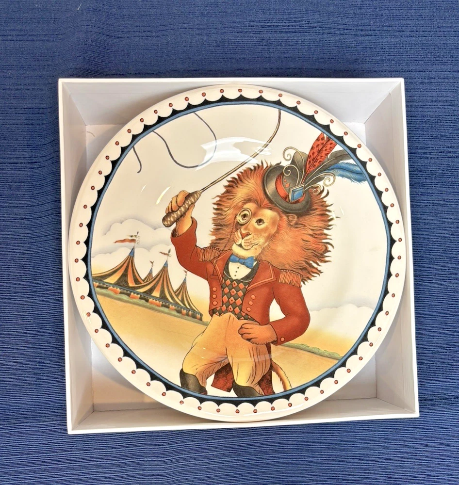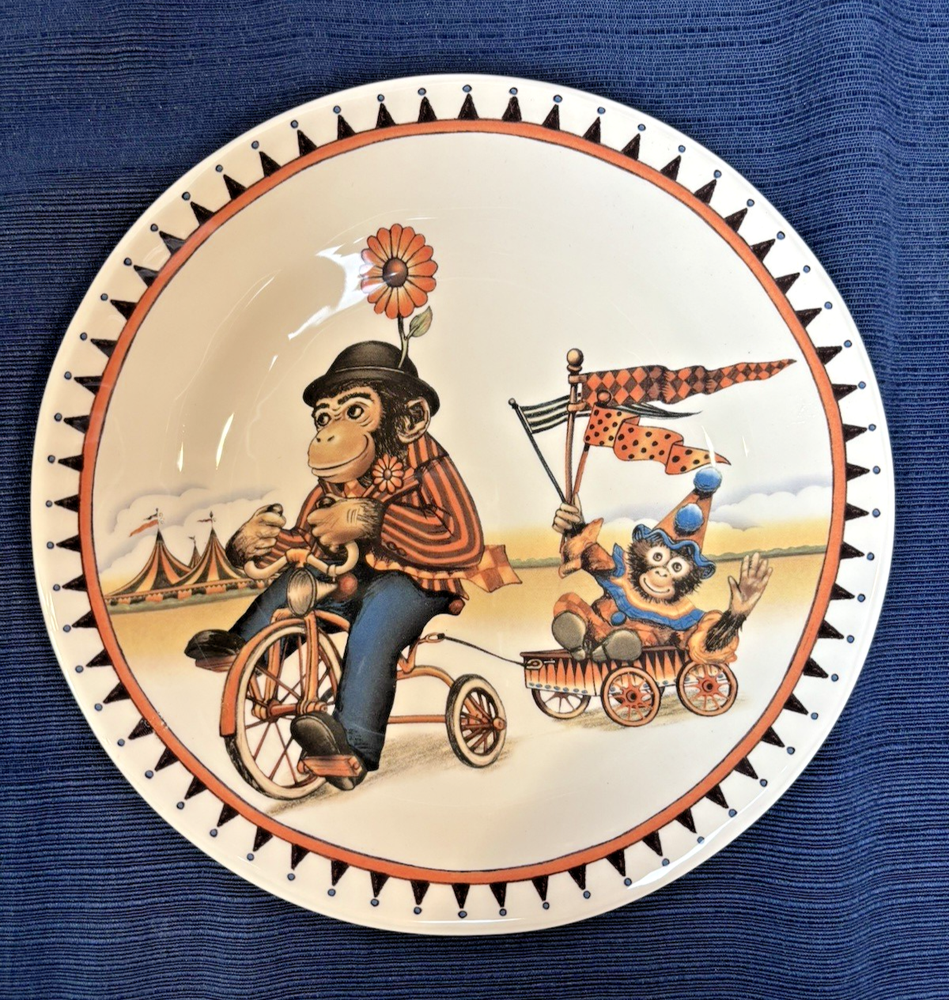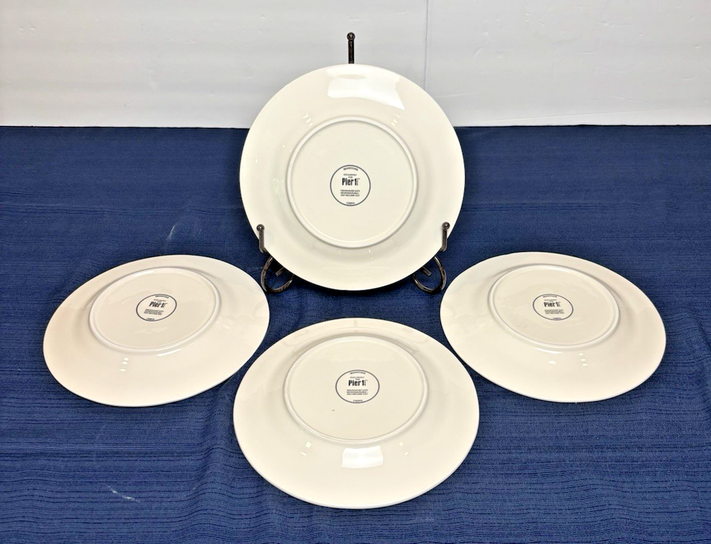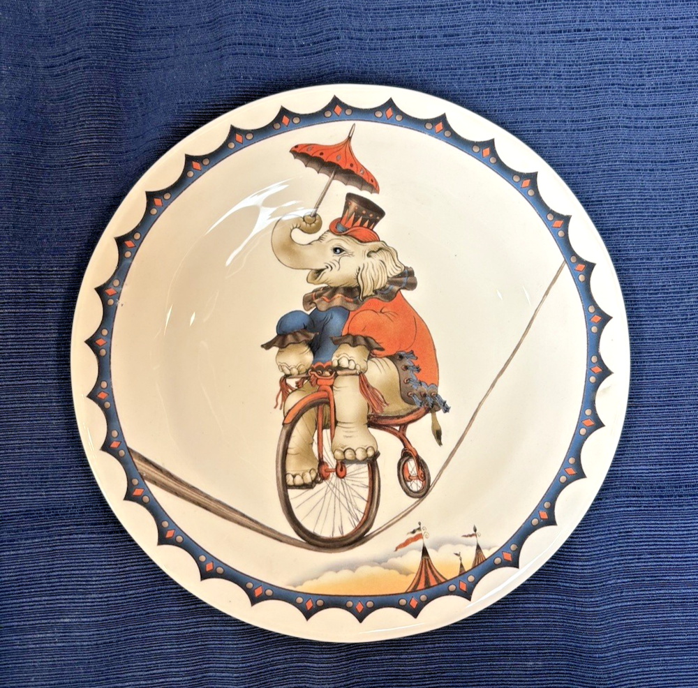 The Pier 1 Le Cirque 8.7" Salad Plates are a set of 4 featuring a circus animals pattern in multicolor. Made of ironstone with a glossy finish, these round plates are dishwasher safe and perfect for all occasions. The limited edition plates from the Le Cirque du Charme collection are decorative and add a touch of charm to any table setting. Made in China using pottery production technique, these original salad plates by Pier 1 are a unique addition to your pottery and glass collection.