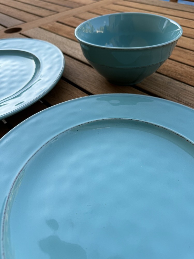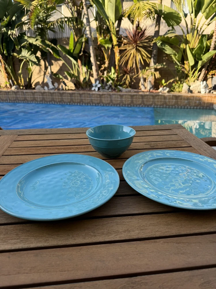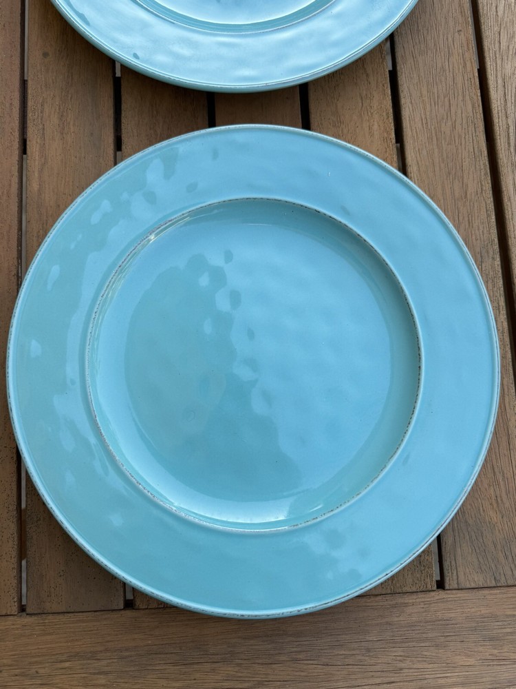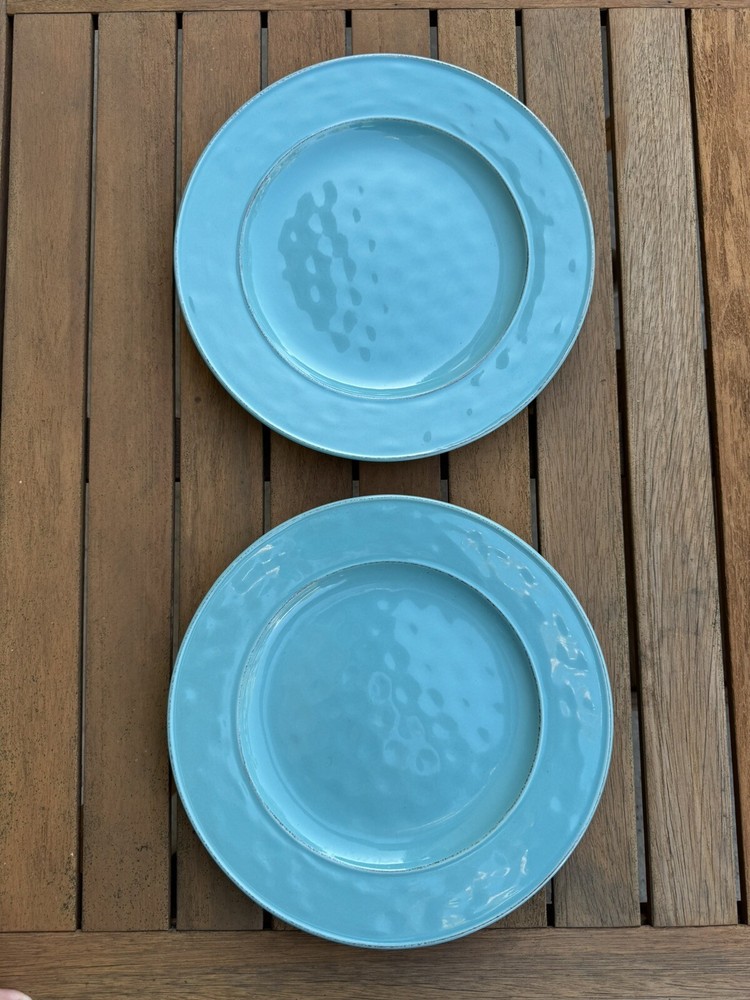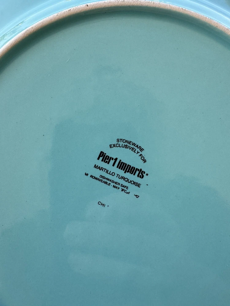 Pier 1 MARTILLO TURQUOIS 2 Dinner Plates 11" STONEWARE Blue Bowl Lot of 3. No chips, cracks or utensil marks. These are in great condition. Thanks for looking. loc:A17