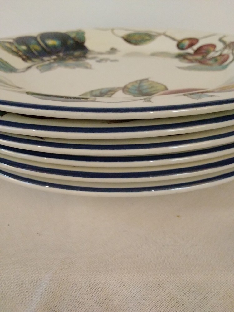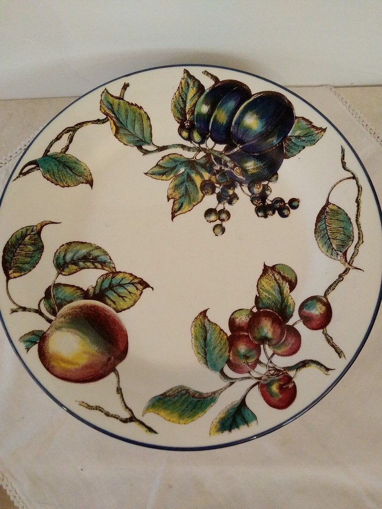 Pier 1 Macintosh Apple & Blackberry Dinner Plates / 10" Set of 6. Blue Rim Discontinued item Excellent condition No cracks no chips Made in England #114