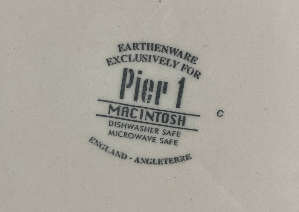 Pier 1 Macintosh Apple & Blackberry Salad, Bread, Dessert Plates / 8" Set of 4. Earthenware made in England Pre-owned in Very Nice Used Condition no chips or cracks some minor utensil wear Local pick up available in South Minneapolis. I'm happy to combine shipping on multiple purchases.