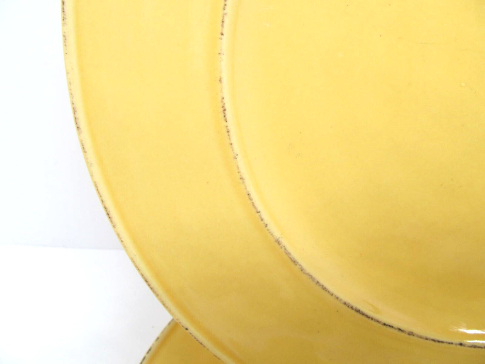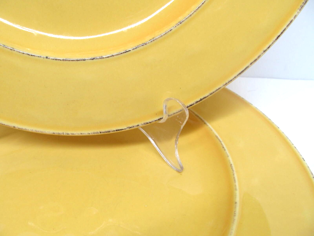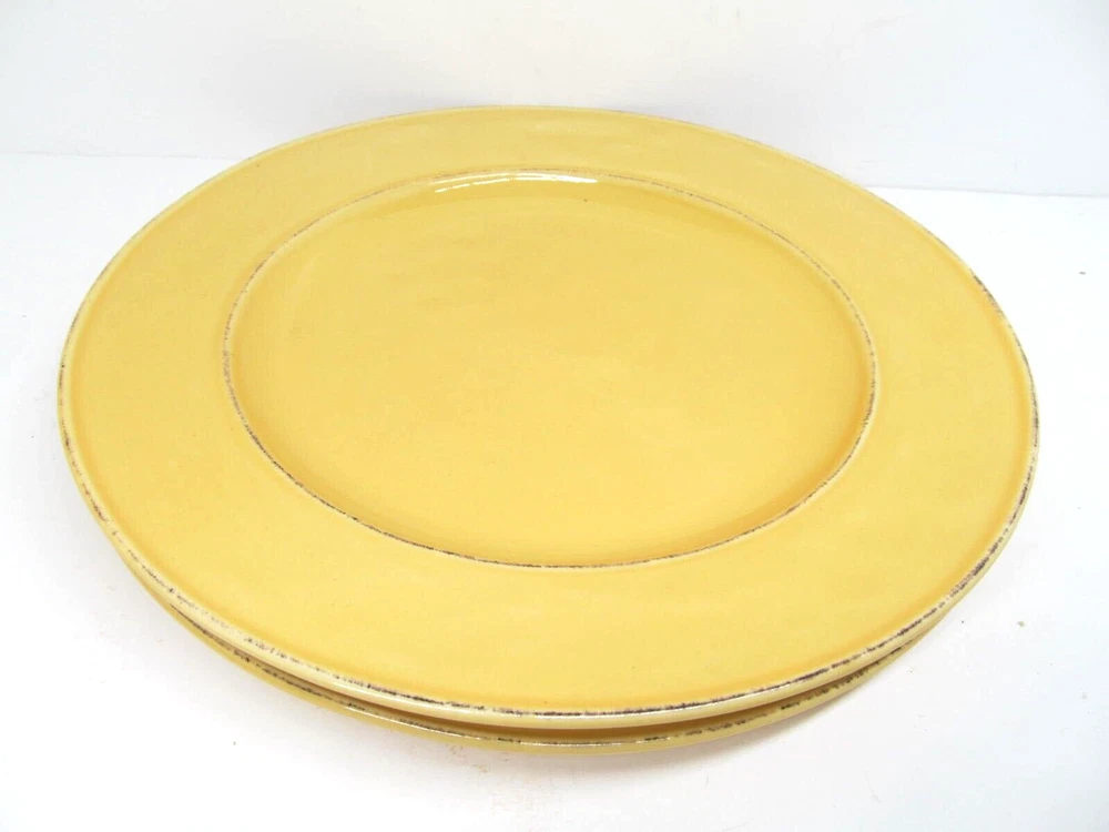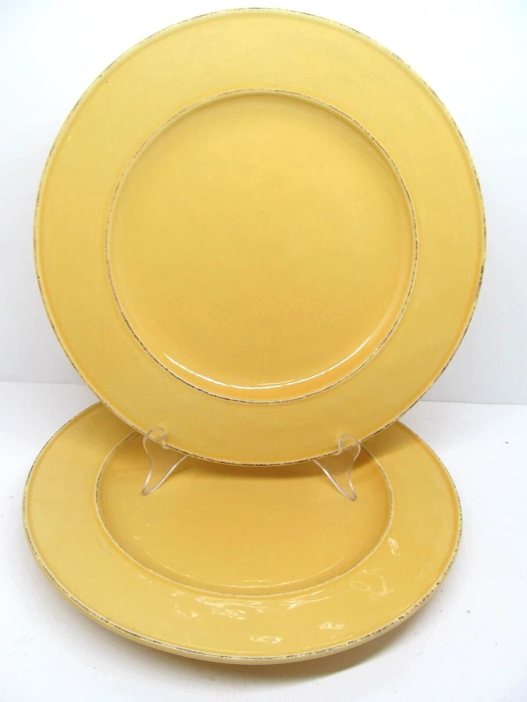 Pier 1 Mango Yellow Set Of 2 Rustic 10 3/4" Dinner Plates VGC You Will Be Getting 2 Dinner Plates In Very Good Condition. Please See Photos. No Chips, Cracks Or Crazing. Very Few Light Scratches If Any. Very Nice. Even Though They Show Very Little Use And The Glazing Is Very Shiny The Backstamps Have Washed Off. I Have The Salad Plates And Bowls Also But Only The Dinner Plates Have Done This. They Will Be Wrapped Carefully And Fully Insured. PB639