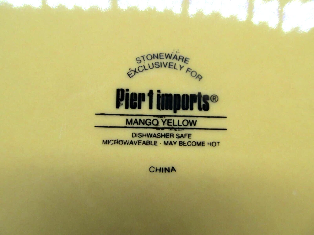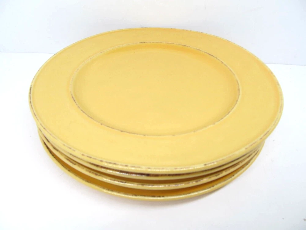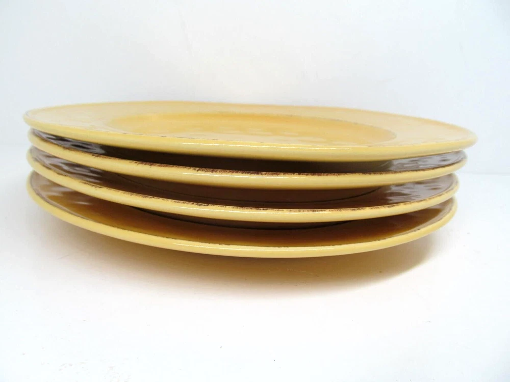 Pier 1 Mango Yellow Set Of 4 Rustic 8 3/4" Salad Plates VGC You Will Be Getting 4 Salad Plates In Very Good Condition. Please See Photos. No Chips, Cracks Or Crazing. Very Few Light Scratches If Any. Very Nice. They Will Be Wrapped Carefully And Fully Insured. PB637