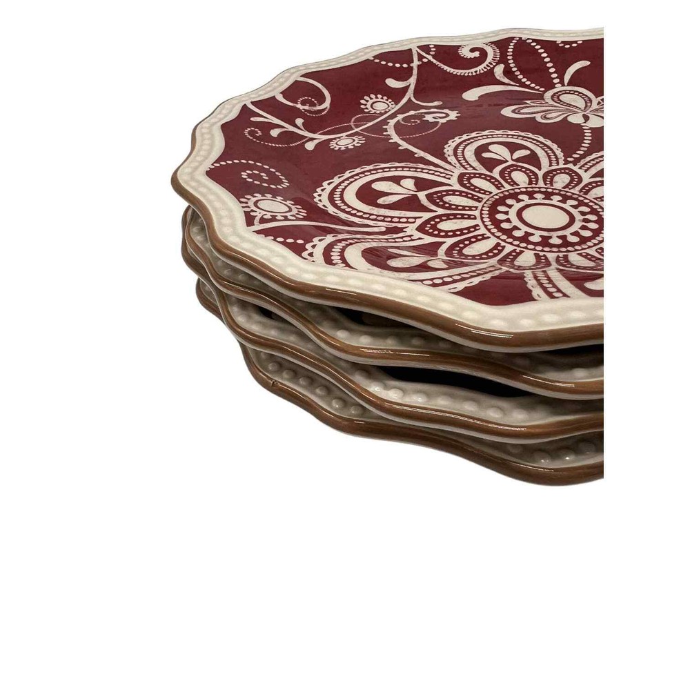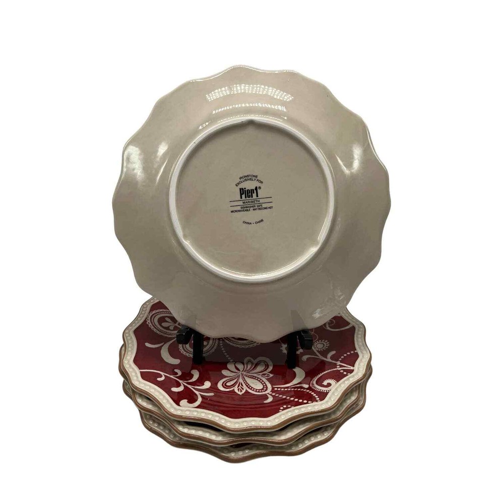 <![CDATA[<div>1000007761 Indulge in the timeless elegance of Pier 1's Maribeth Pattern! This stunning set of 4, featuring a rustic red and cream floral design, will add an enchanting touch to your dining experience. Measurement: 8.5" Type: salad plate Material: ceramic Care: dishwasher safe Made in: China This set is in very good preowned condition. Unless otherwise stated, it should be We do our best to ensure that descriptions are accurate, and items are functional before listing, but accidents happen. If you find that what you ordered is not what you were expecting, let us know. Most items ship within 1 business day Please let us know if you have any questions.
