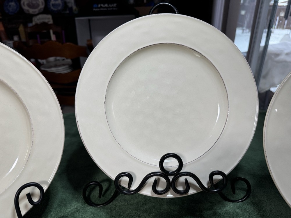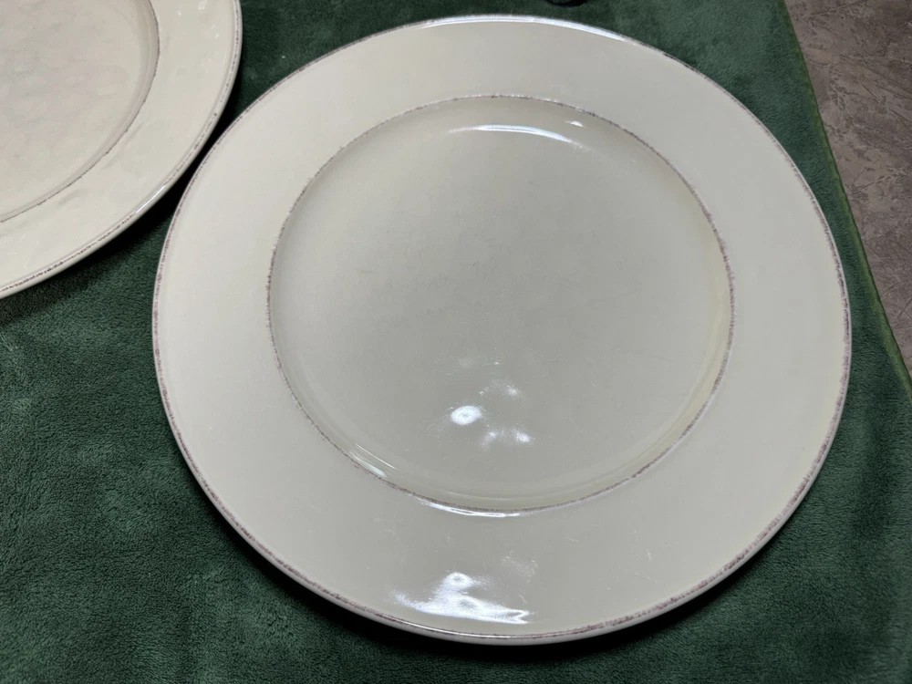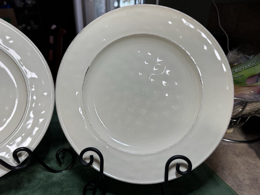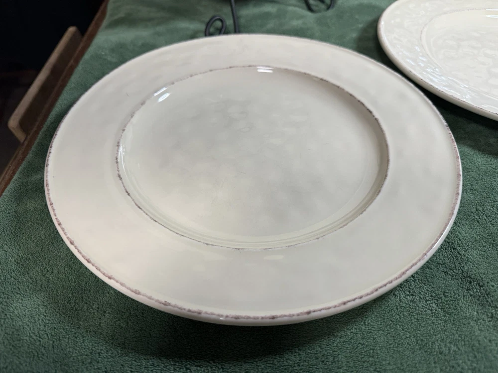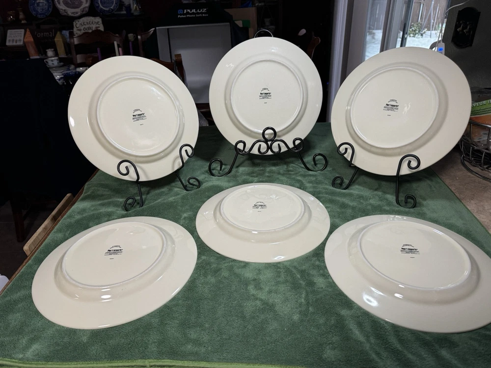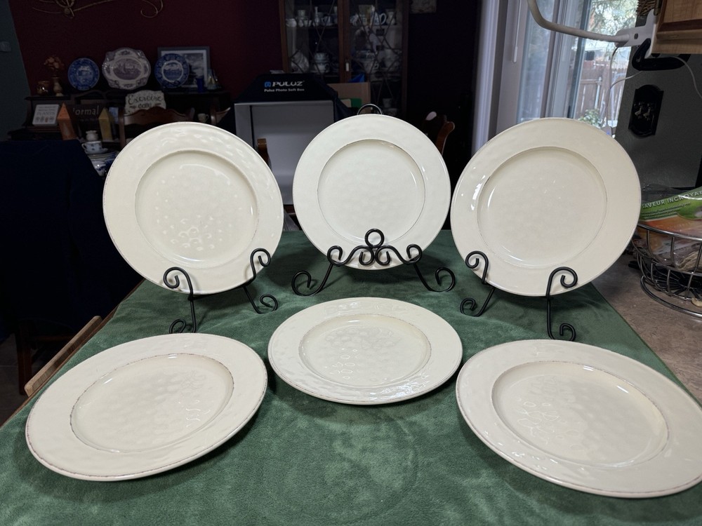 Crafted for the modern table, this set of six Pier 1 Martillo Stoneware dinner plates brings a touch of sophistication to any dining experience. Each 10-3/4” plate showcases a lustrous creme brûlée hue, adding a rich, velvety texture that's sure to complement your favorite entrees. These mint condition preowned plates are without any chips, nicks or scratches. LOVELY!
