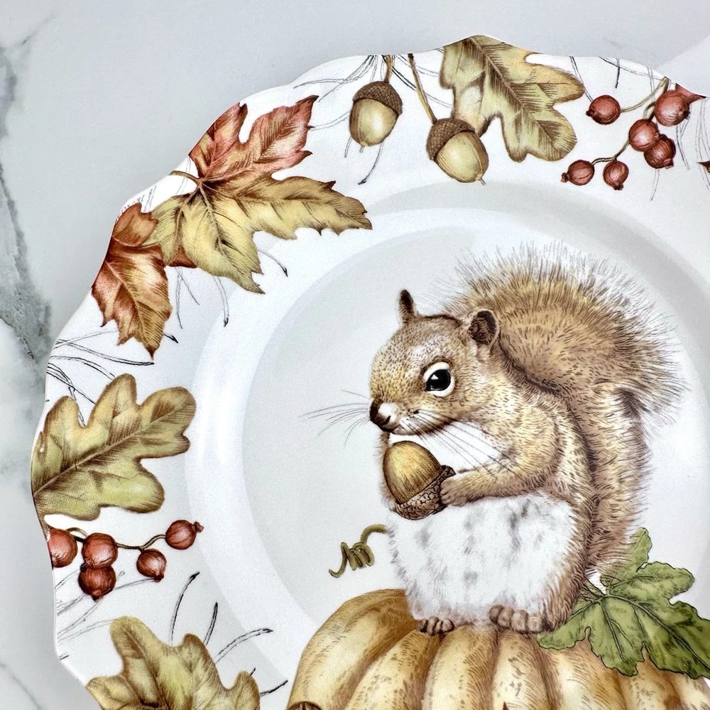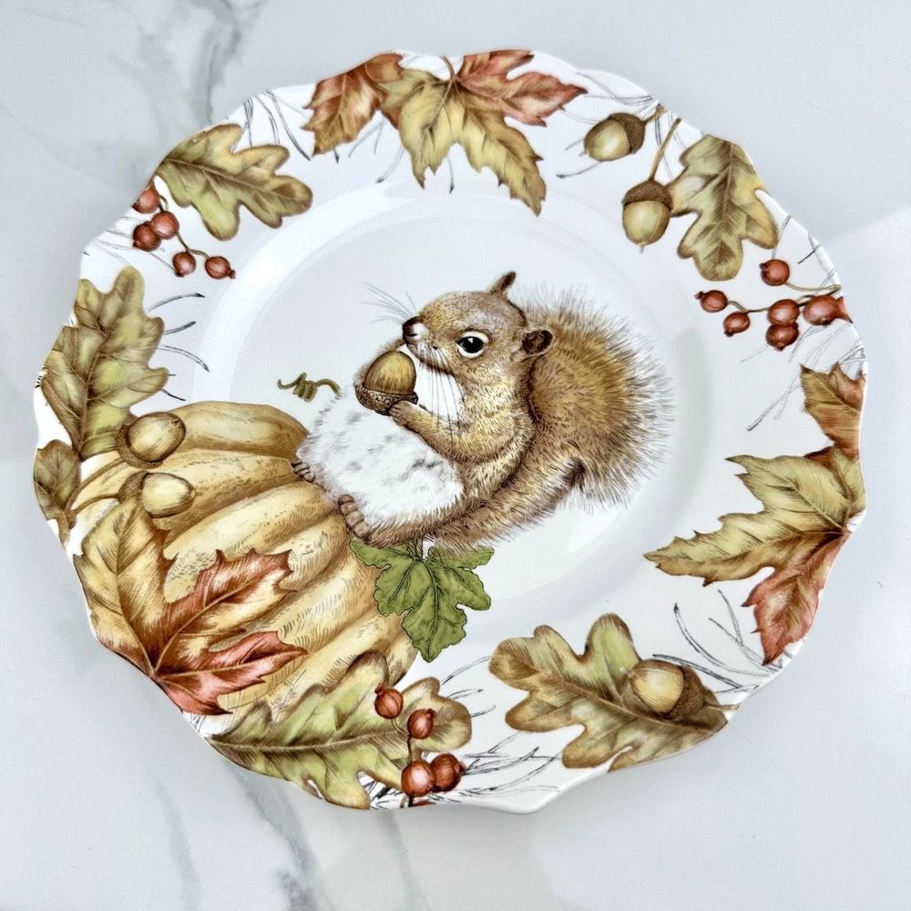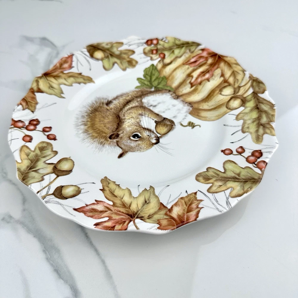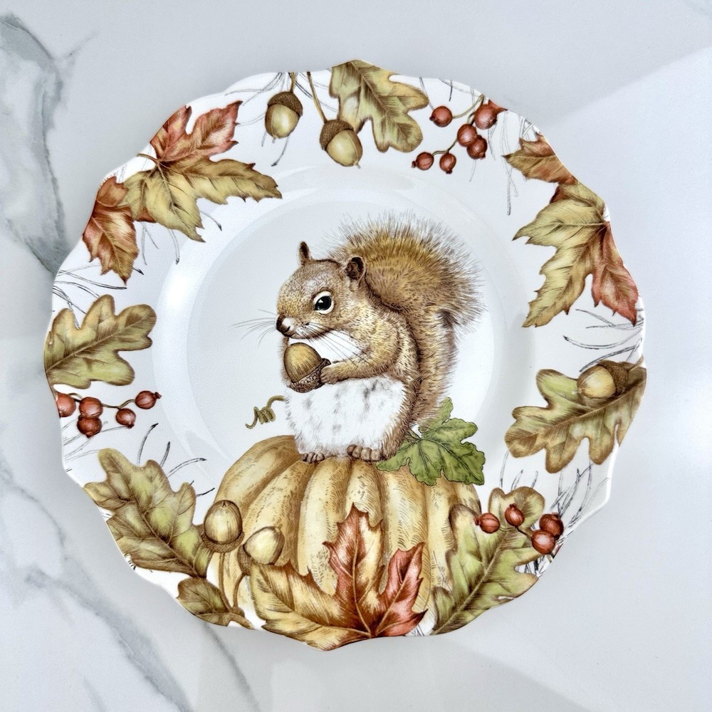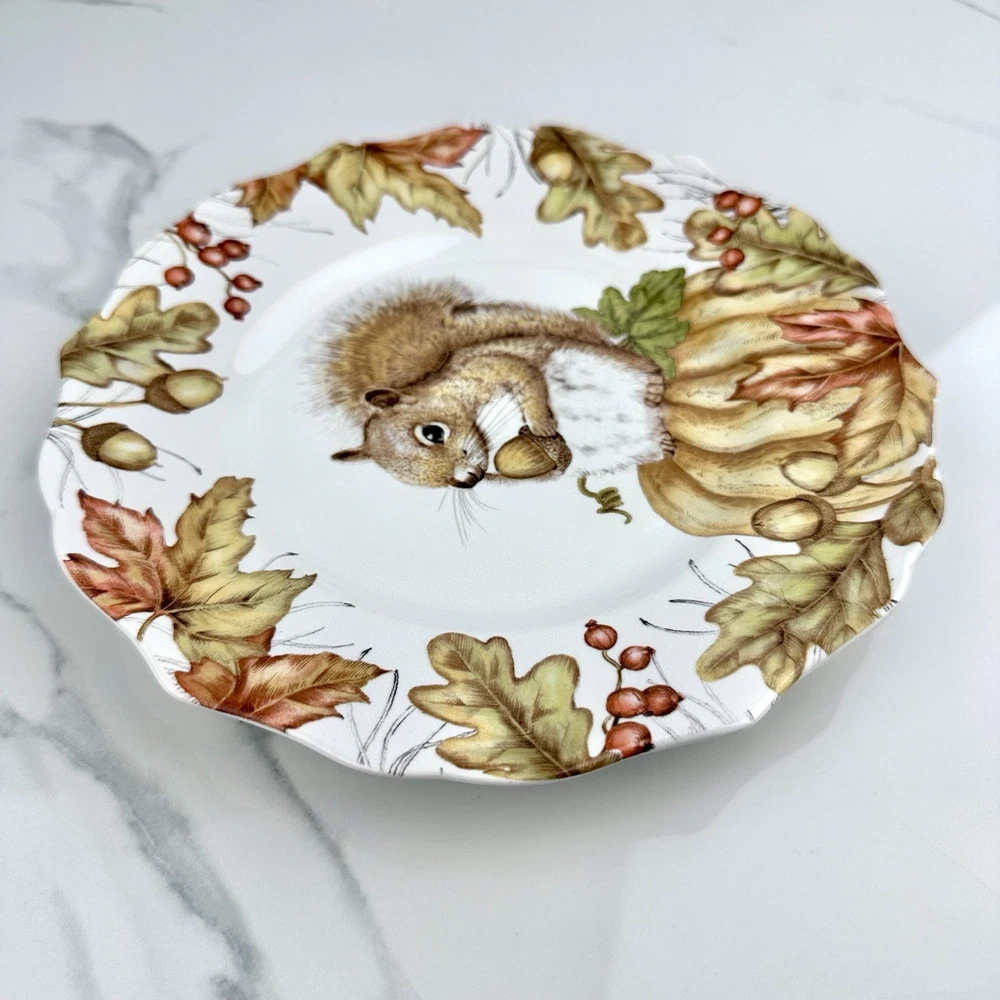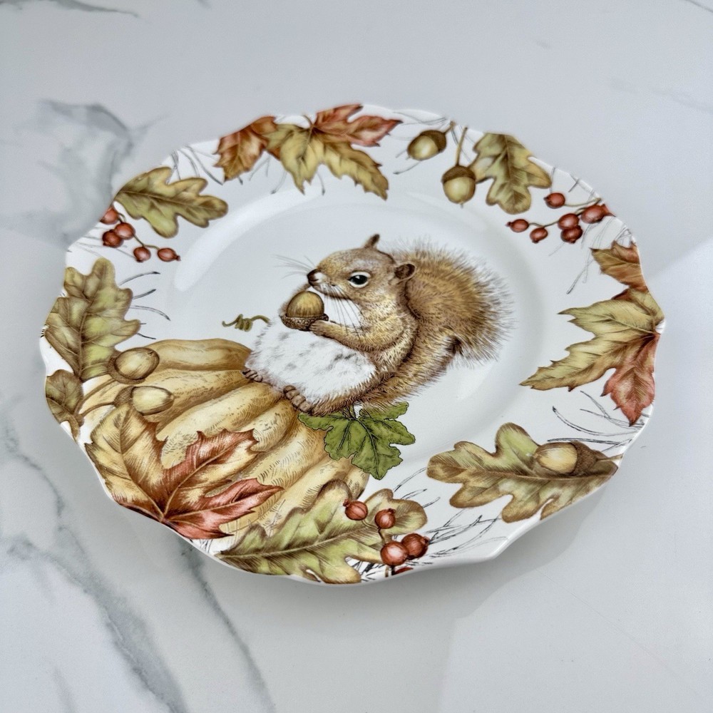 Pier 1 Mazey the Squirrel Salad Plate – Porcelain Autumn Fall Woodland – Rare & Retired Celebrate the charm of fall with this delightful Mazey the Squirrel salad plate by Pier 1 Imports. Made of durable porcelain, this beautifully detailed plate features Mazey the Squirrel surrounded by autumn leaves and acorns in a cozy woodland theme. This piece is part of the retired and hard-to-find Mazey the Squirrel collection, making it a lovely addition to any fall table setting or a perfect gift for collectors. Ideal for fall entertaining, Thanksgiving, or display as part of a woodland-inspired collection. BRAND: Pier 1 Imports COLLECTION: Mazey the Squirrel ITEM: Salad Plate (single) MATERIAL: Porcelain SIZE: Approx. 8.5” diameter CONDITION: Excellent pre-owned condition with minimal signs of wear; no chips, cracks. Great condition. * This item is sold as described. No returns accepted. **Please review photos as they are part of the description** SHIPPING INFORMATION: Shipping: Flat-rate $16.99. We strive to provide fast and secure shipping. We offer $16.99 Flat Rate USPS Priority Mail Domestic Ground Shipping. International shipping rates will be more and shipping rates may vary. Ships same or next business day. Choose from a variety of shipping options to suit your needs, and enjoy discounted rates when purchasing multiple items. We carefully package all items to ensure they arrive in perfect condition. For your peace of mind, tracking is included with every order! Returns: No returns – Please review all photos and details before purchasing Authenticity Guarantee: All items are 100% authentic, sourced from trusted suppliers Colors may vary based on individual computer monitor or smartphone settings. Check Out More: Browse our shop for more finds!
