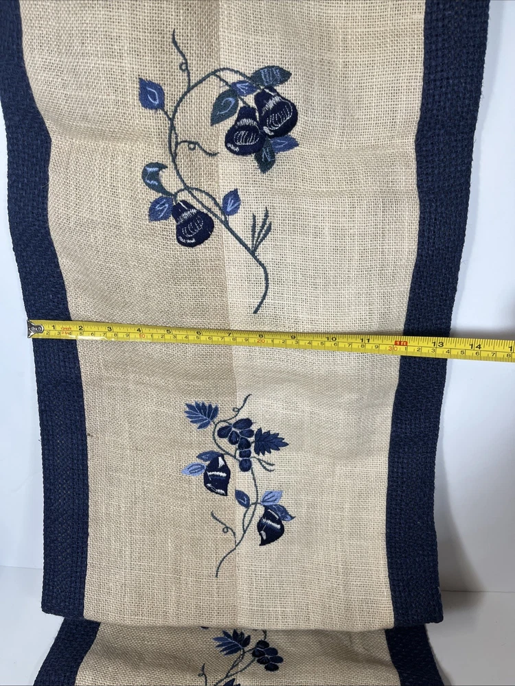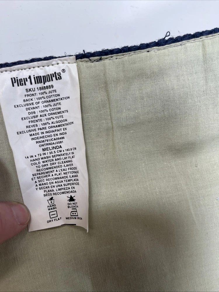 Elevate your dining experience with the Pier 1 Melinda Burlap Twill Trim Table Runner. Adorned with an embroidered charming floral pattern, this piece is a testament to timeless style and functionality. Designed to fit a variety of occasions, its versatile aesthetic makes it perfect for both casual and formal gatherings. Crafted from a blend of jute and cotton, the table runner measures 14" x 72", featuring a rectangular shape that complements most table settings.