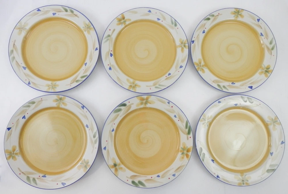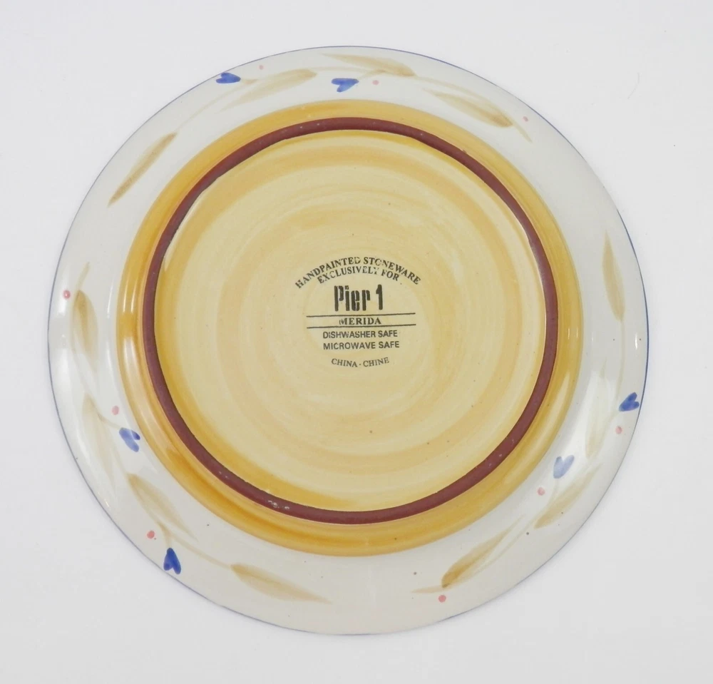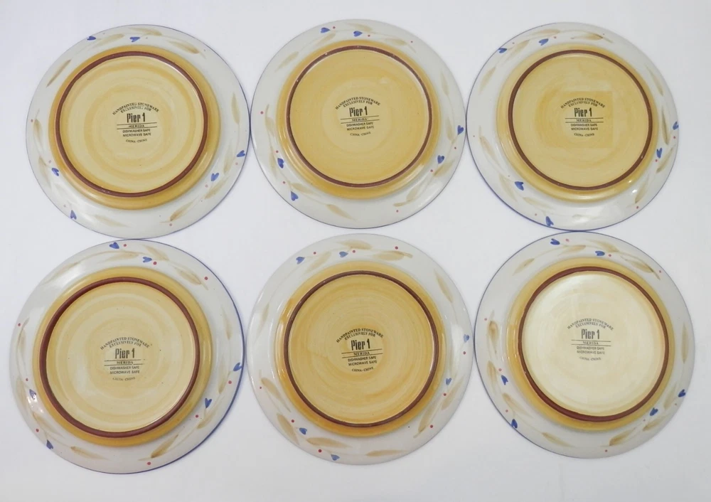 Up for sale is a set of 6 Merida stoneware 8¼” salad plates made exclusively for Pier 1. The plates are in excellent condition with no chips or cracks. Please examine the photos and ask any questions. Thanks for looking! Please visit our eBay Store for more vintage items! TO ALL CUSTOMERS PLEASE READ THE FOLLOWING! QUESTIONS : We will be glad to answer any questions with the most honest and accurate response we can. If you have any questions about the quality, size, age, condition…etc. of an item that we are selling that has not been addressed in the description, please feel free to ask. DESCRIPTION: We will do our best to inspect and accurately describe each piece. If you have questions or want additional photos…email us before bidding, requesting additional information on it. Please study the photos closely as they form part of the overall description. Vintage/Antique item(s) may display: wear & tear scratches, scuff marks, rust, discoloration, stains, bends, chips, cracks, fading, etc. Items are sold as described & all sales final, UNLESS a return policy is stated in the listing or the Shipping and Payments page. IF THERE IS A PROBLEM, PLEASE CONTACT US ASAP AND WE WILL WORK WITH YOU! PAYMENT : Paypal is the ONLY method of payment . Payment must be received within 7 days after the auction ends before merchandise will be shipped. Failure to do so can result in sale being cancelled and item being relisted or offered to another bidder. SHIPPING: Our goal is to ship your item within 1 business day. We do not ship on weekends or holidays. Our primary methods of shipping are priority mail, first class, and media mail. For international shipping we only use eBay's International Shipping. SHIPPING MULTIPLE ITEMS: We will gladly combine multiple items on domestic shipments to save you money if we are able to combine them into one package. Use the cart checkout option for a revised total or pay the full amount and we will refund you the difference. We cannot combine items for international shipments. REFUNDS AND RETURNS: I will, to the best of my ability, describe my items with the utmost honesty and accuracy as possible. If returns are offered in the listing, the item(s) must be returned in the same condition that was sent within the 30-day period. The refund will be for the purchase price(s) only. Original shipping cost will not be refunded unless item does not match description in listing. The buyer is to pay all return shipping charges. Returns are not available for international buyers. FEEDBACK: Positive feedback will be left at the conclusion of a successful transaction. We would appreciate positive feedback in return. Please don’t leave negative feedback without giving us the opportunity to rectify an issue with any merchandise that we sell. YOUR SATISFACTION IS OUR PRIORITY. IF YOU’RE UNHAPPY WITH ANY PART OF YOUR SHOPPING EXPERIENCE WITH US, PLEASE LET US KNOW BEFORE LEAVING NEGATIVE FEEDBACK SO WE CAN FIX IT! THANK YOU FOR READING THIS. WE LOOK FORWARD TO HAVING YOU AS ONE OF OUR CUSTOMERS.