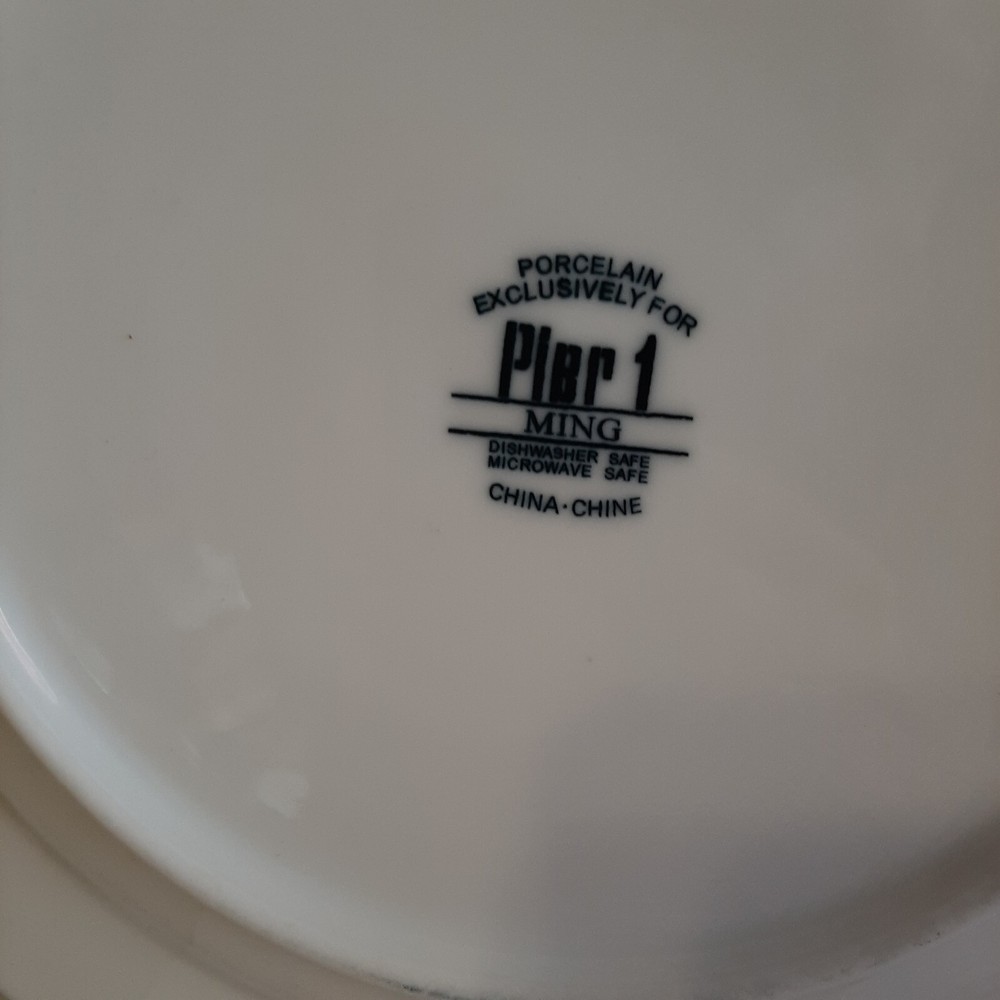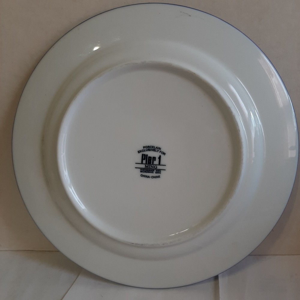 UP for sale is an 11 inch wide Pier 1 Ming Dinner Plate. Read the description for condition and look at the photos, please. A nice piece of dinnerware. This will be mailed via USPS Priority Mail. Payment is due within 3 days of purchase. Feel free to contact me with any questions or requests for more photos. Thank you for looking, and please check out my other items for sale.