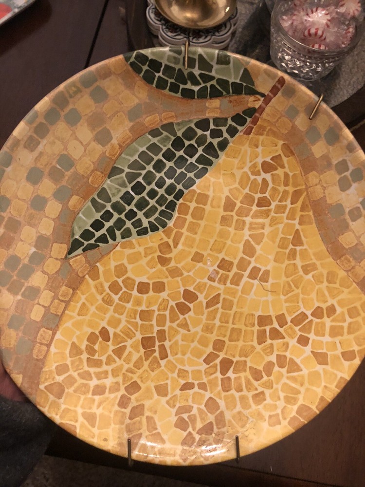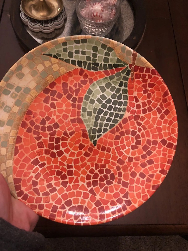 Pier 1 Mosaic Fruit Multicolor Stoneware Salad Plate Set 8.25 Inch Set Of Two. Set Includes two beautiful mosaic tile plates 1 orange 1 pear