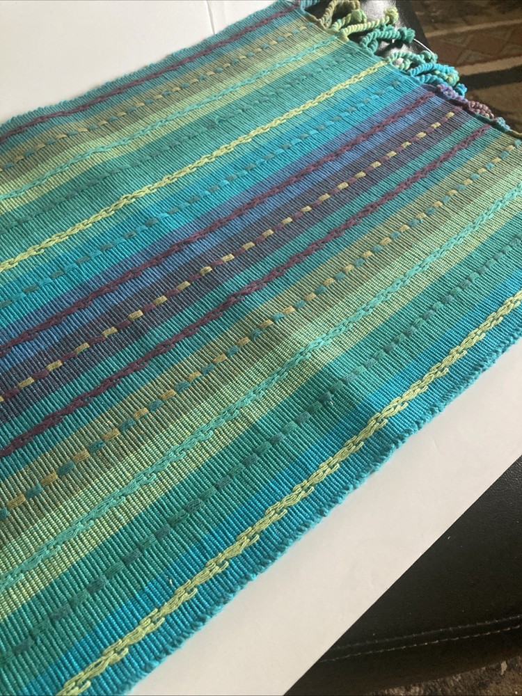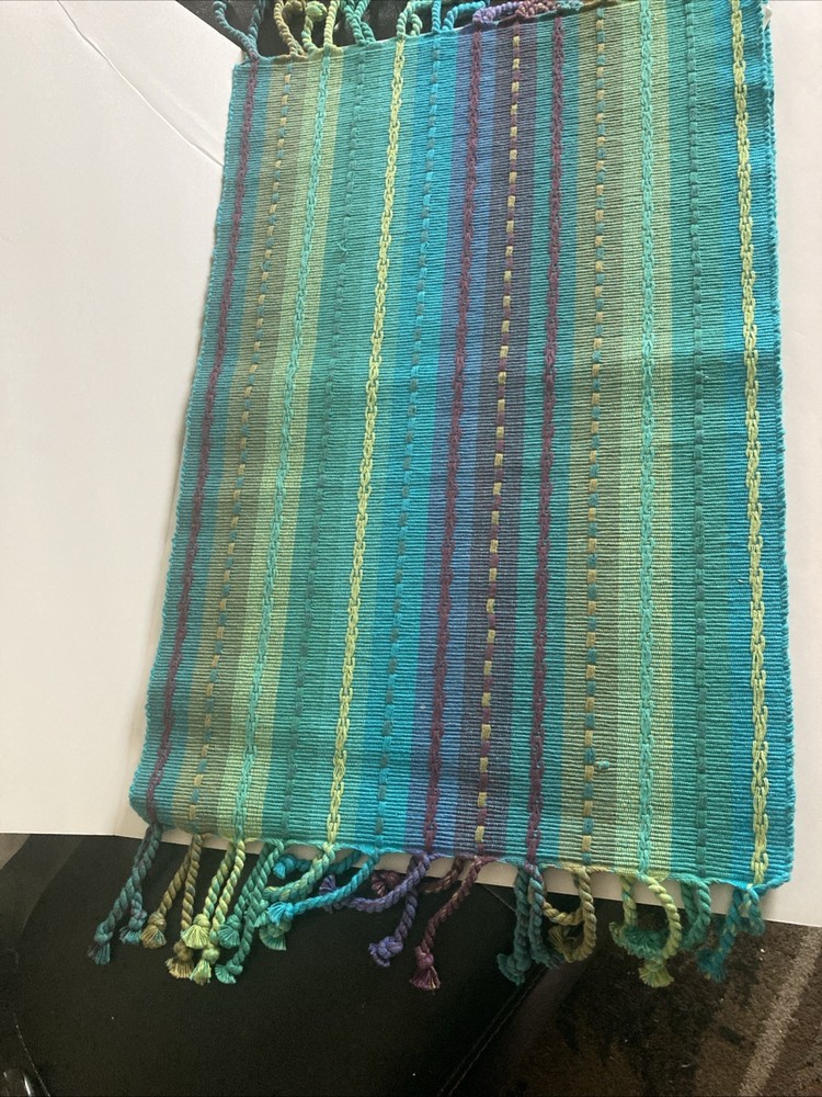 Pier 1 Multi Striped Placemats With Fringe Set Of 2 Colorful Approx 14”x20” Boho...