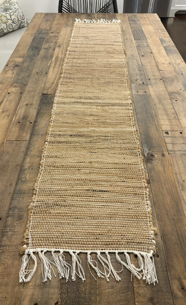 Pier 1 NATURAL JUTE Fringed 72x13" Table Runner: Brown • Thanksgiving Fall Excellent used condition. • No stains or smoke smells. Please review pictures closely to make your decision. ***I happily combine shipping. Just reach out to me to make arrangements prior to purchase.***