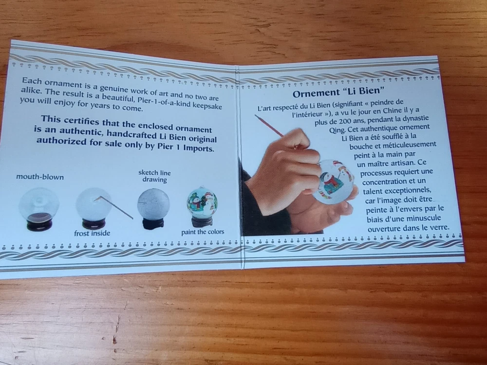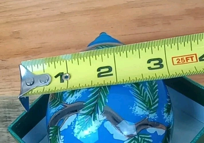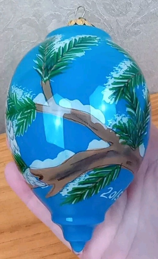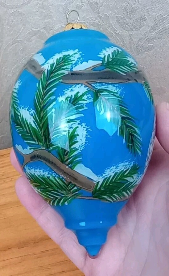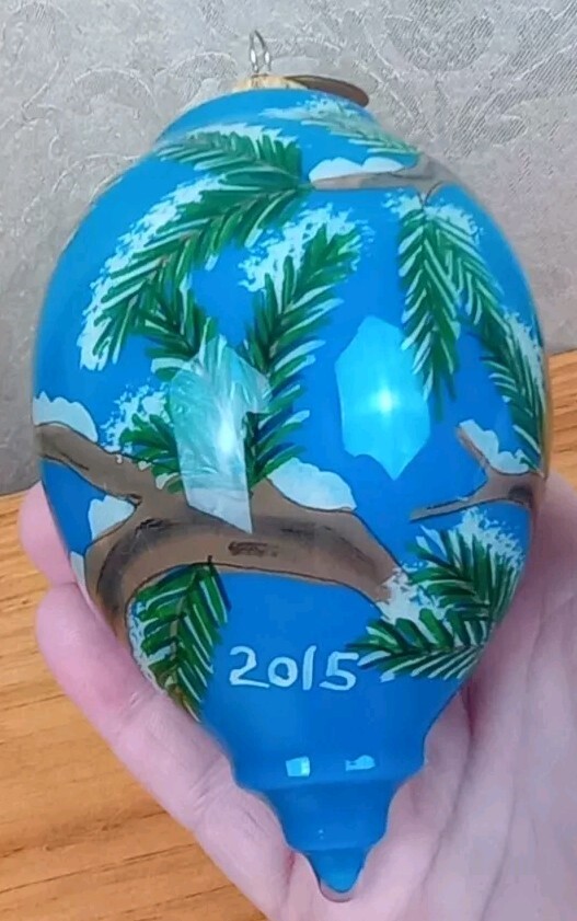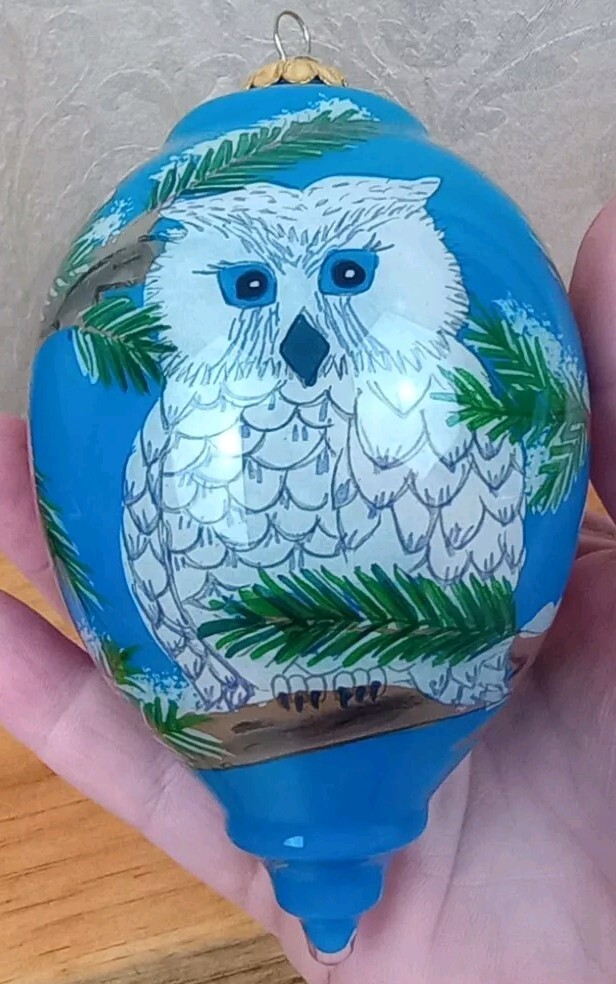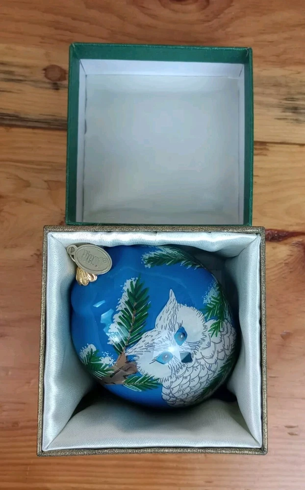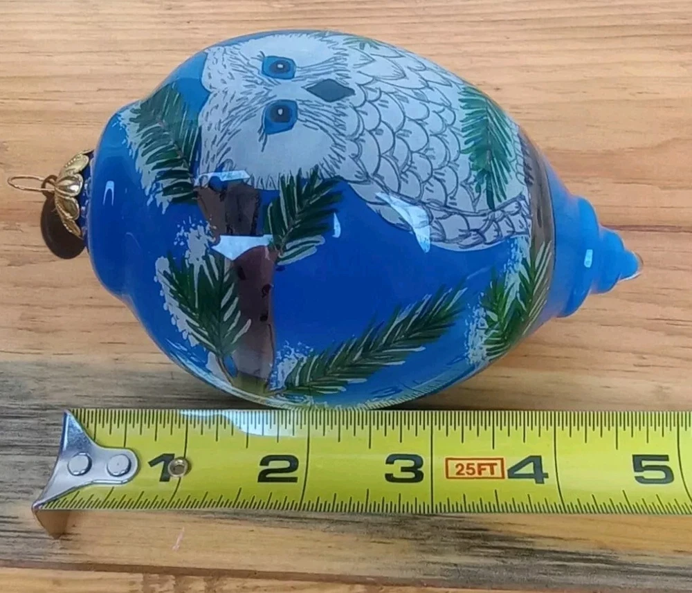 Add a touch of nature to your Christmas tree with this beautiful Pier 1 Imports hand blown glass ornament. The oval shaped ornament features a stunning blue color with a unique animal print pattern and a hand painted design. The Li Bien 2015 Snow Owl collection is a perfect addition to your holiday decor. This original piece comes with a certification statement, ornament, and gift box, making it a great gift for anyone on your Christmas list. The pier 1 tag adds an extra touch of charm to this decorative ornament. Get ready to impress with this one-of-a-kind piece! Your feedback is extremely important to me. If there is an issue with an order please contact me and I will do my very best to correct the situation. Please understand that most of my items are vintage and/or used and may show some wear from age and use. Items may show scuffs, fading, paint loss, marks etc. Please review all photos of a listing before purchasing. I have done my best to include all accurate details and descriptions of an items' condition. All items are sold "As Is".