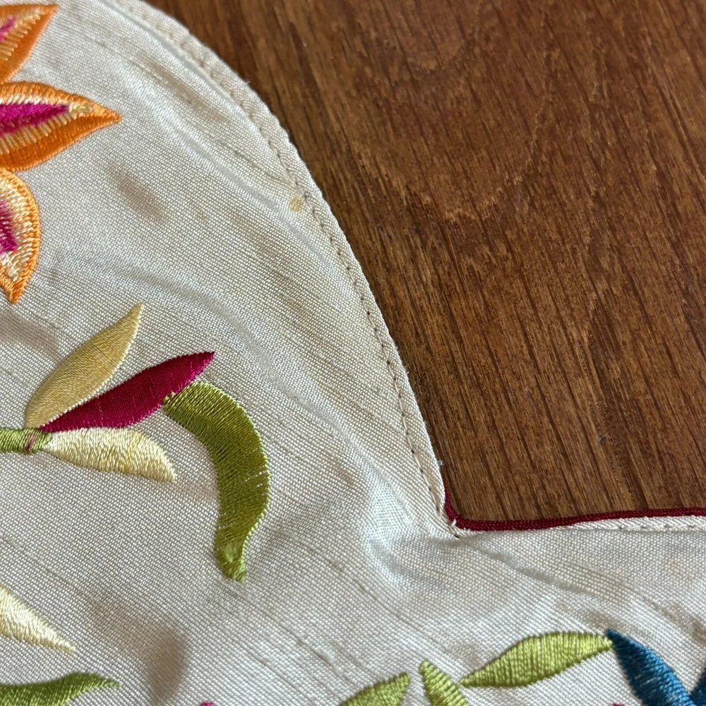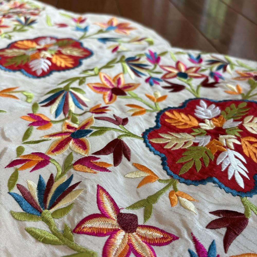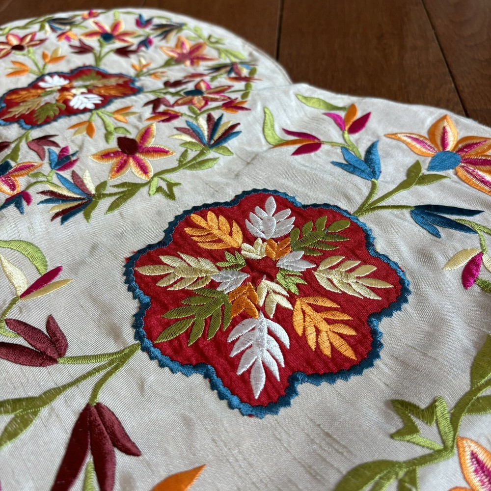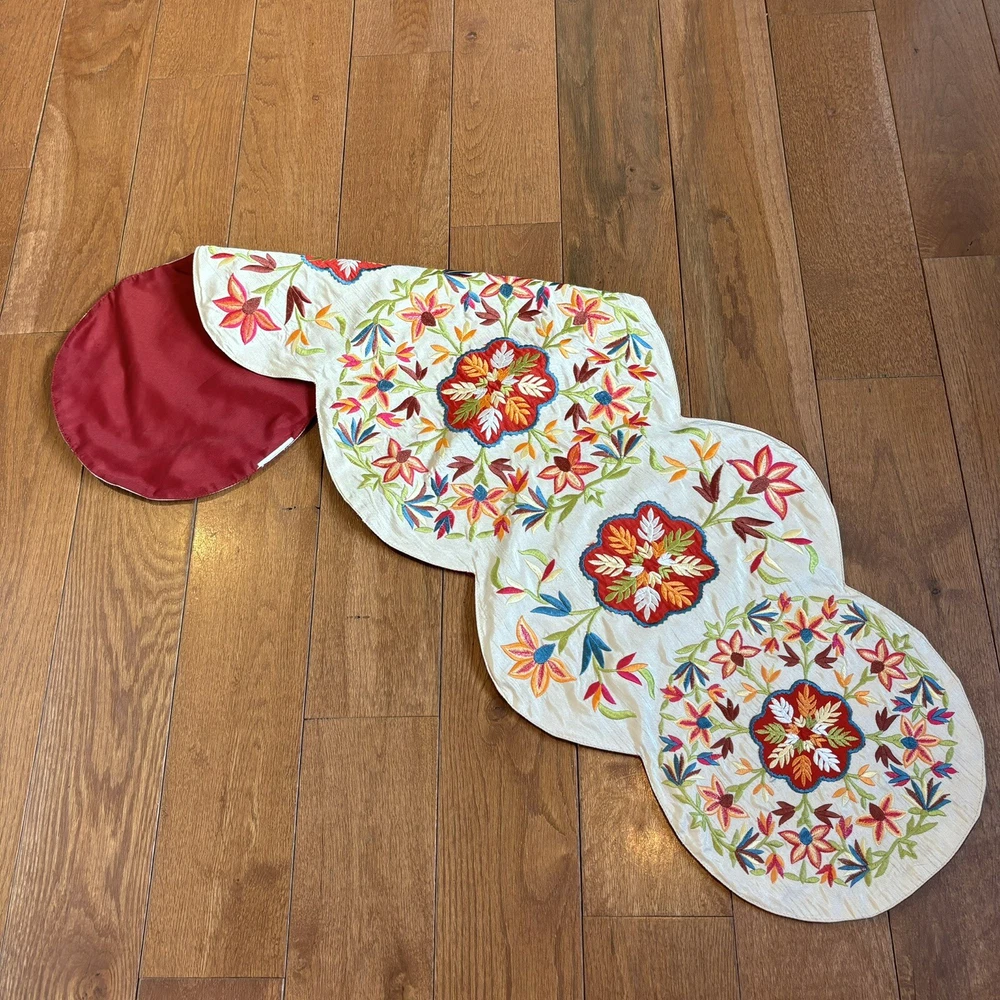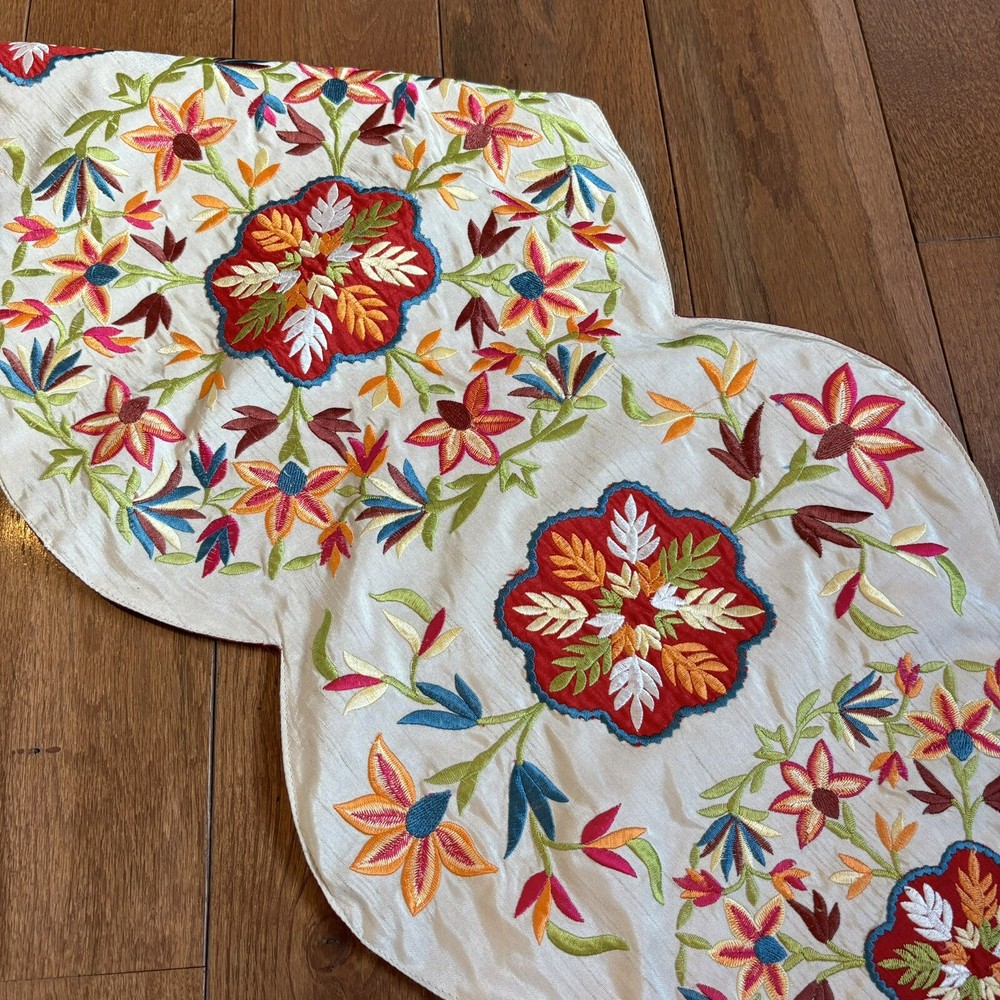 Pier 1 One Import Embroidered Flowers Table Runner Centerpiece 40.5”x 13” Very pretty table runner in great condition. No stains or holes. Light spot on the side. Hardly noticeable. Great buy! 40.5" x...