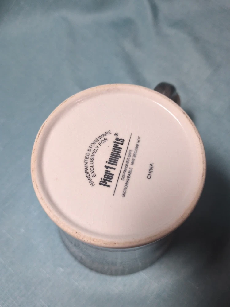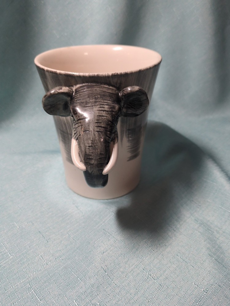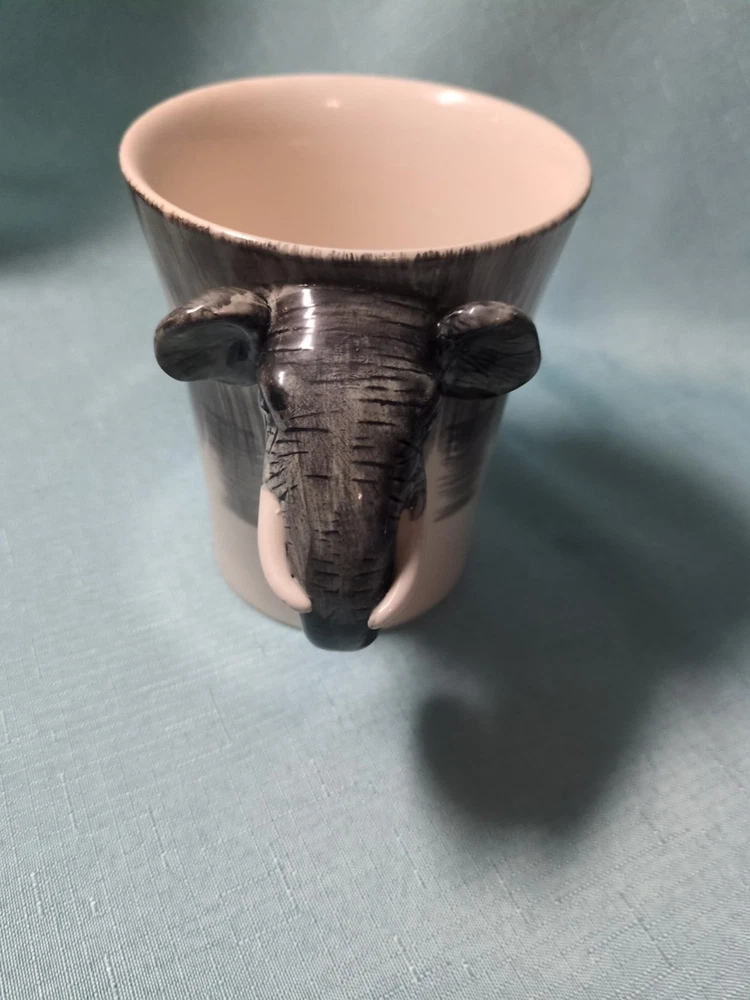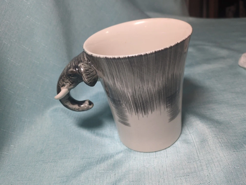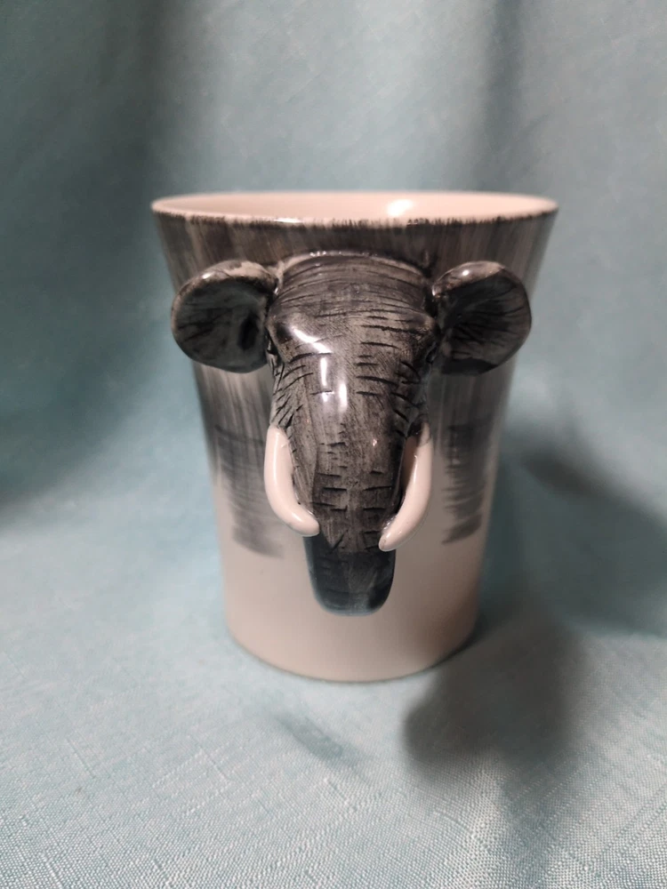Pier 1 One Imports 3D Elephant Head Trunk Handle Coffee Mug Cup 16 oz Gray White This Pier 1 Imports mug cup is a unique addition to any collection. The 3D elephant head and trunk handle make it a fun and functional piece, perfect for hot or coldPier 1 Imports Monkey Chimpanzee 3D Arm Handle 18oz Coffee Mug/Cup Hand Painted Add a touch of modern style to your morning routine with this unique Pier 1 Imports coffee mug. The beige stoneware features a hand-painted design of a monkey or chimpanzee with a capacity of 18 oz. Perfect for all occasions, this mug is great for both hot and cold beverages. beverages. The grey white color and animal print pattern add a touch of animal charm to your morning coffee or tea. Crafted from stoneware, this original model is a large 16 oz capacity and stands at 4.75 inches tall. The hand-painted design adds a special touch to this collectible piece. The mug cup is in excellent condition, ready to be enjoyed by its new owner.