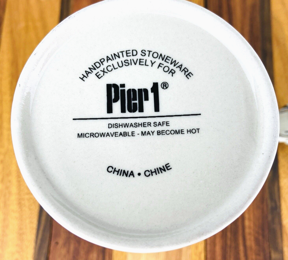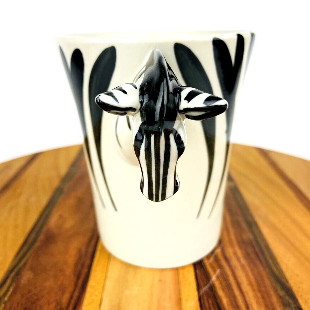 Add a unique touch to your morning routine with this charming 3D zebra head handle coffee mug/tea cup from Pier 1 Imports. Made of sturdy stoneware material, this 16 oz capacity cup is perfect for enjoying your hot or cold beverages. The zebra pattern adds a playful touch to the design, making it suitable for all occasions. This collectible mug is an original Pier 1 creation, featuring a normal glass type and a durable handle for easy grip. It is perfect for unisex adults and has no vintage specifications. The mug was manufactured in China in the time period of 2010-2019. Get your hands on this adorable mug to make your mornings more enjoyable. Height of mug 4 3/4 inch Width 4 inch Capacity 16 ounces
